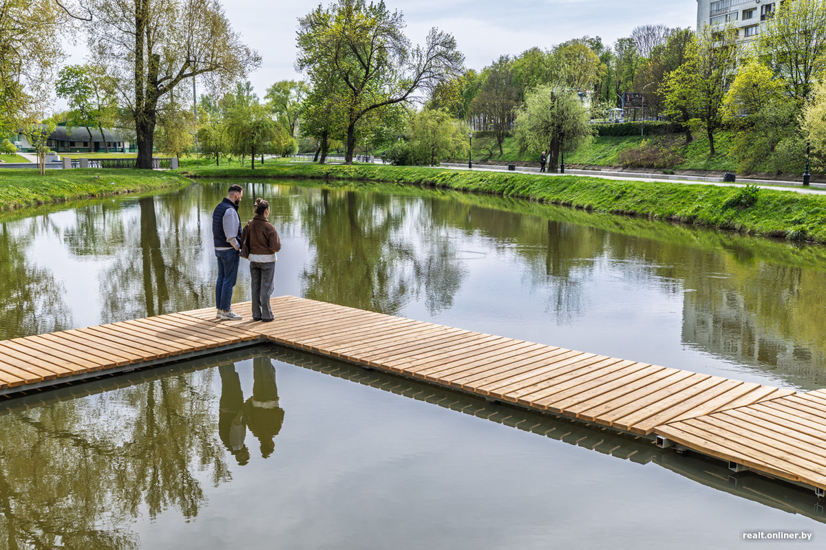 Полгода назад нам обещали, что на месте кафе, у воды, появится зона тихого отдыха. «Проект предусматривает деревянные настилы на сваях, с возможностью близкого подхода к воде. Также будет выполнено благоустройство прилегающей к внутреннему водоему территории», — комментировало руководство парка. Такой тихая зона оказалась в жизни: