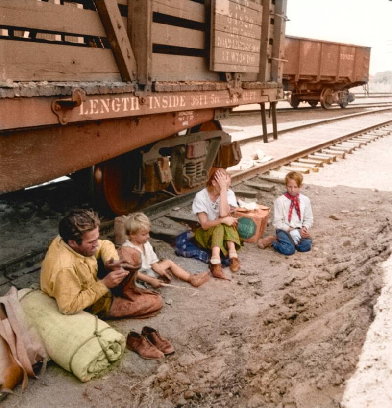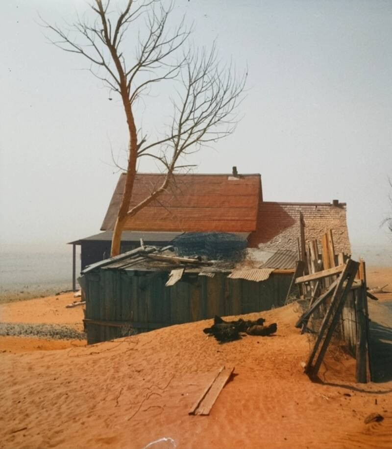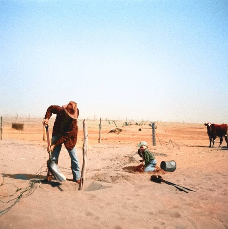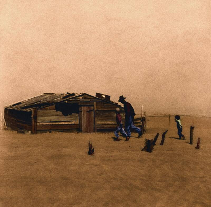 «В начале мая на 640 акрах нашей земли не больше травы или даже сорняков, чем на полу собственной кухни. И даже скудные остатки сухой прошлогодней травы унесены ветром», — писала своим родственникам в Калифорнию одна из пострадавших семей. Вместе с почвой бури унесли надежды жителей Великих равнин на хоть сколь-нибудь стабильное будущее. Накоплений от предыдущих удачных сезонов с дождями хватало максимум на пару лет неурожаев, но засуха все не заканчивалась. Люди остались без средств к существованию, без элементарной еды, и на каждой ферме рано или поздно приходилось принимать решение о переезде. Бросалось все, даже самое малое, чтобы было построено и посеяно.