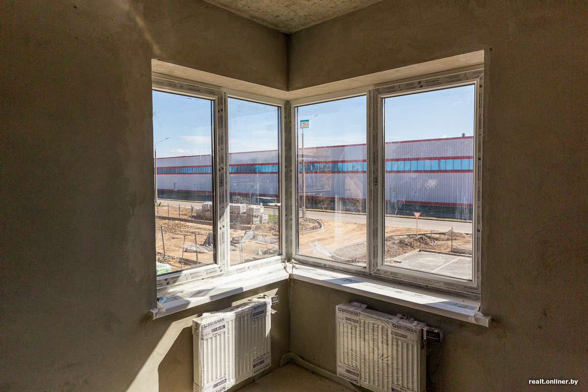 Рядом действительно работает ТЦ «Корона». Недалеко стоит костел Святого Роха. Правда, есть и не очень приятное соседство: глухая стена логистического центра прямо под окнами и мясокомбинат на горизонте. Но, покупая жилье в больших городах, неминуемо приходится с чем-то мириться.