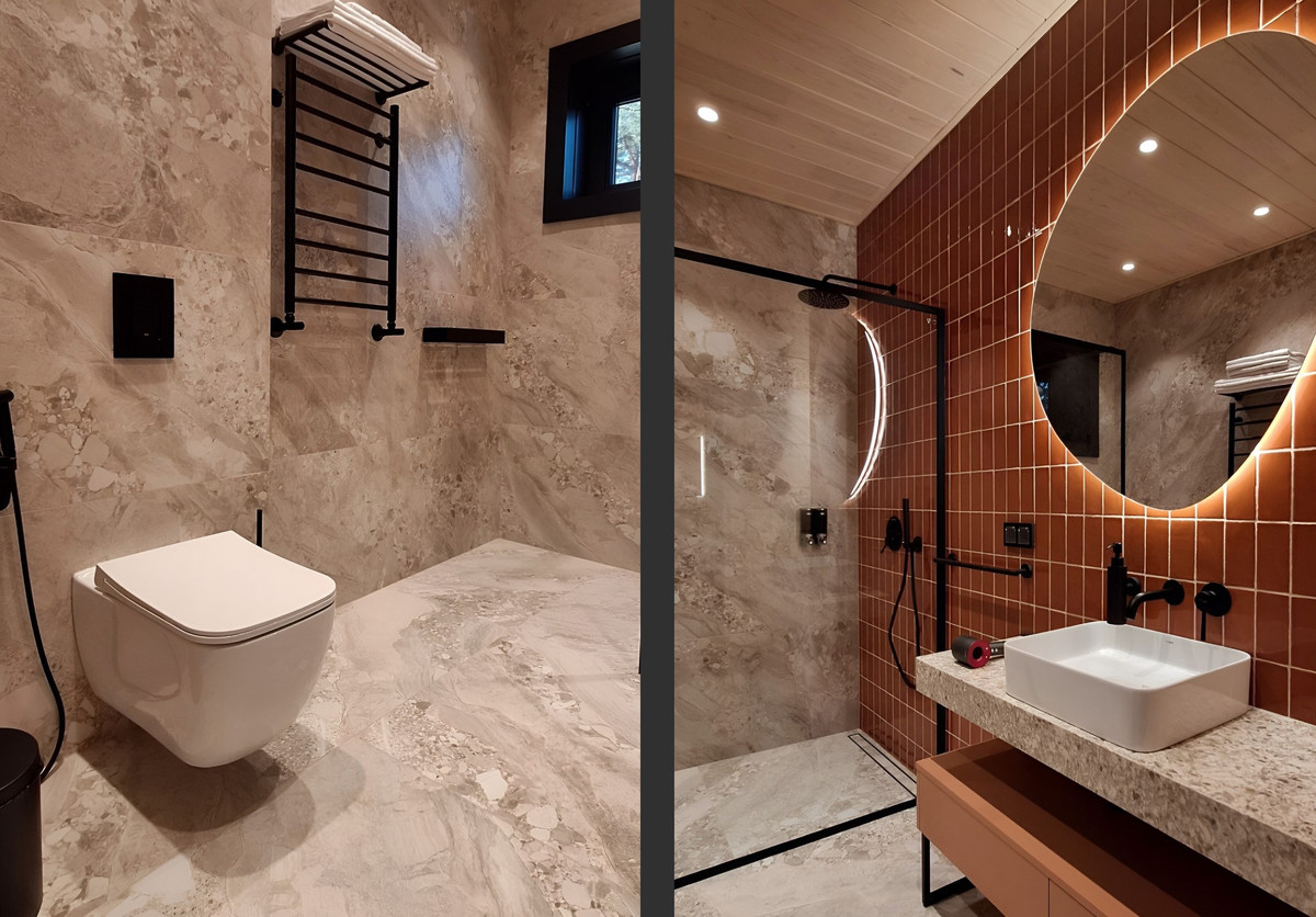 — Мы уже завершили первую очередь строительства. Это пять коттеджей, предназначенных для сдачи в аренду, спа-комплекс и административное здание, где размещается ресепшен. Все домики выполнены в единой стилистике: конструктив — из клееного бруса, фасады покрашены, внутри — отделка в стиле «эко», — рассказал представитель компании.