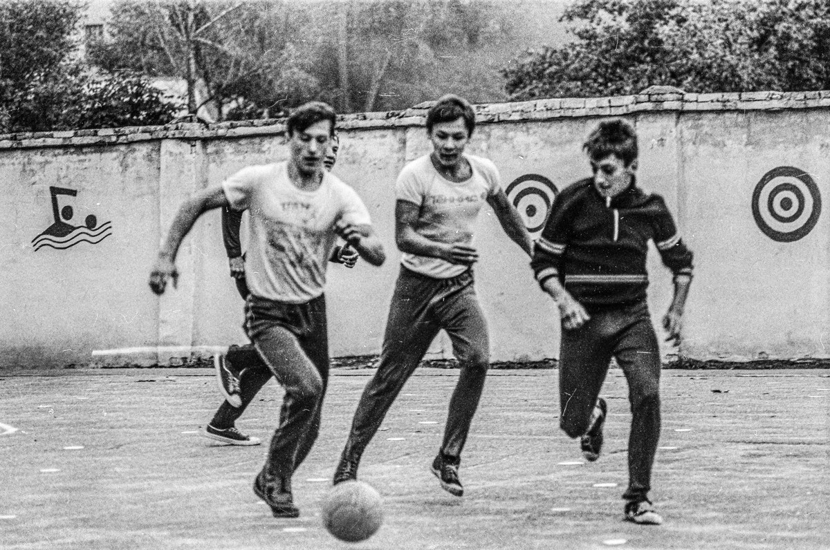 Некоторые просто гоняли мячи в школьных дворах. На одном из снимков в галерее можно рассмотреть стадион школы №42 на улице Комсомольской, это учебное учреждение переехало на другой адрес в 2000-х.