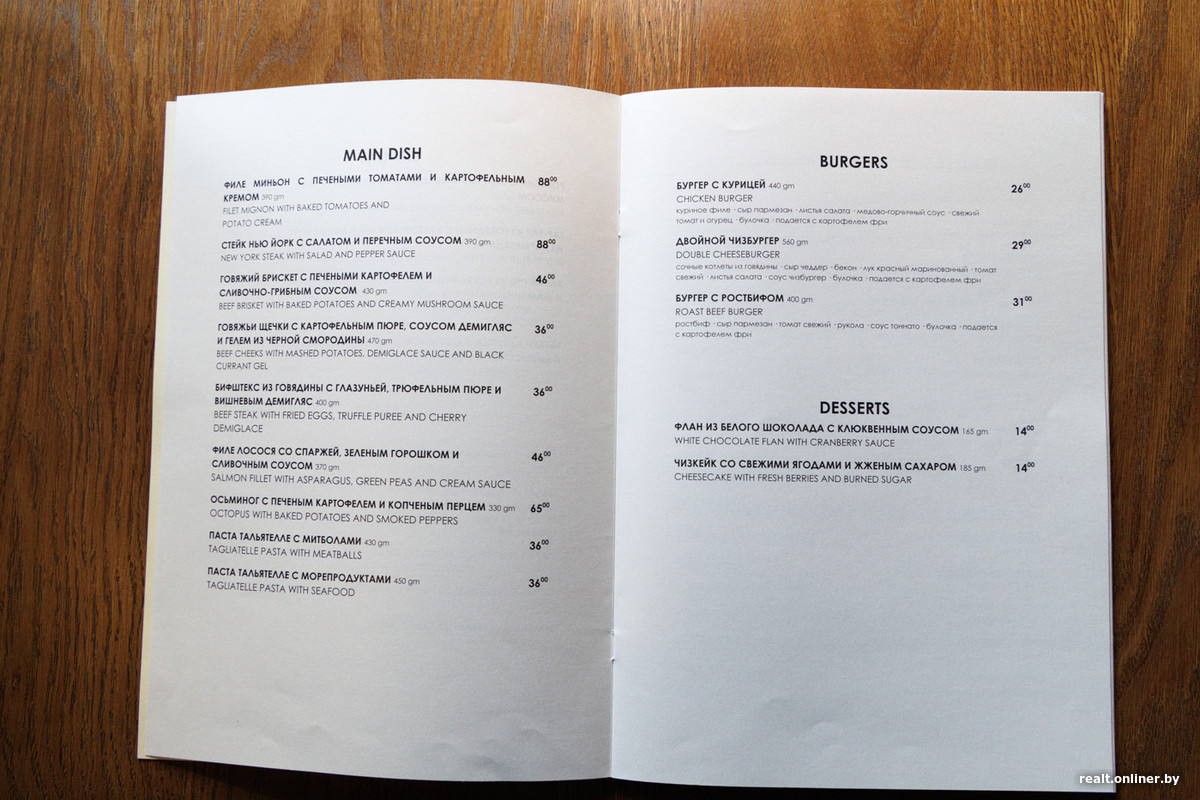 И меню блюд, и меню коктейлей имеют общую особенность — они ориентированы на классику, но при этом обладают авторскими и современными нотками.