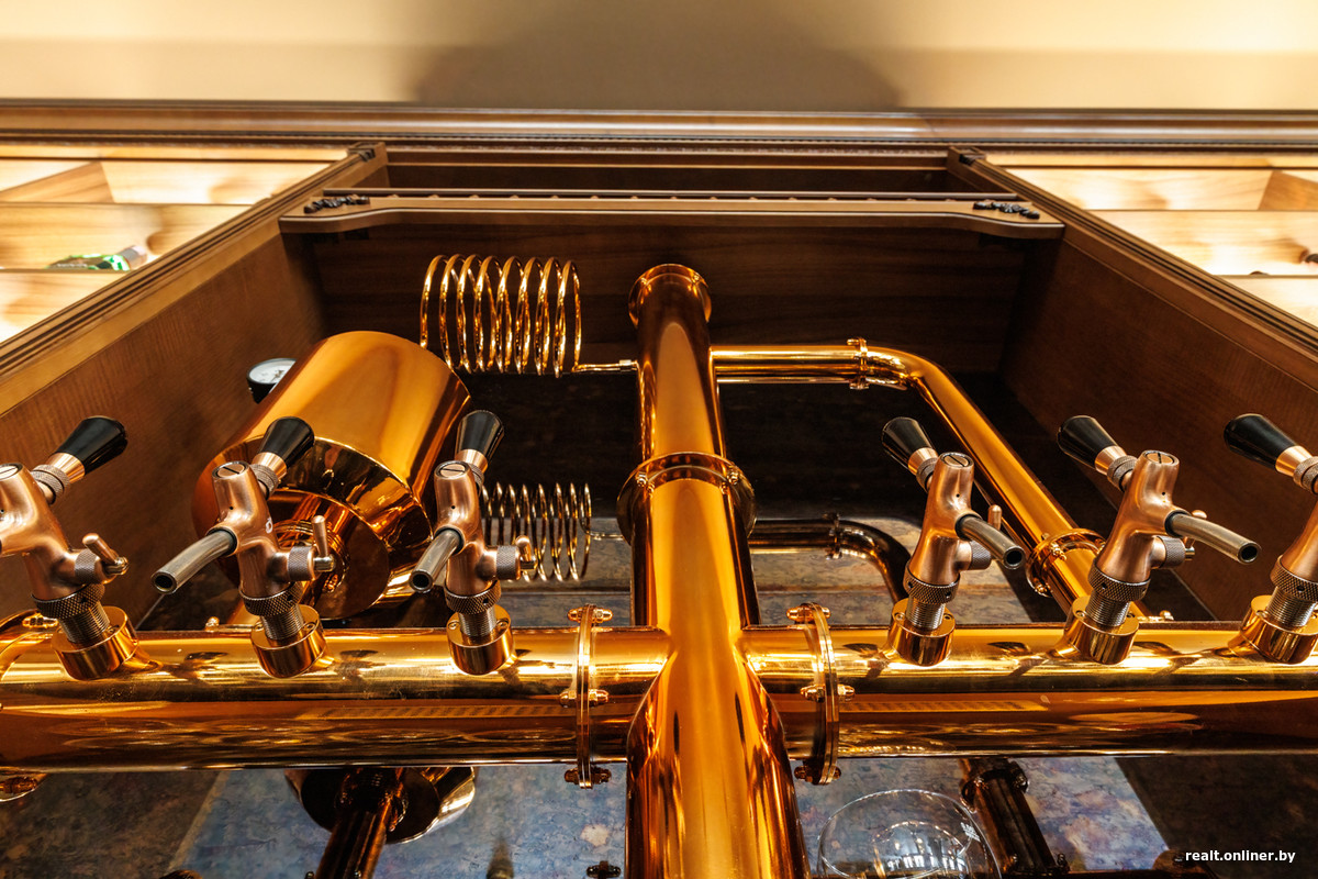 Получилась зона со столиками, а также большая барная стойка длиной 12,5 метра. Стойка большая, длинная, изогнутая — все как в классическом американском баре.