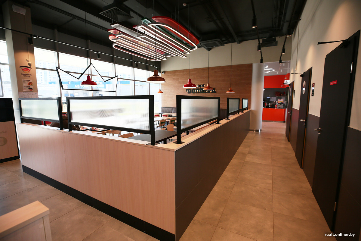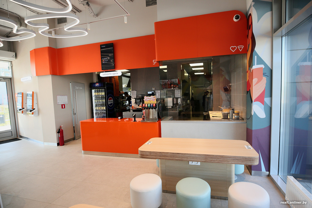 Итак, что же здесь предлагается для людей, решивших посвятить солнечный денек велосипедному катанию? В здании работают две точки общепита — Burger King и «Додо Пицца».