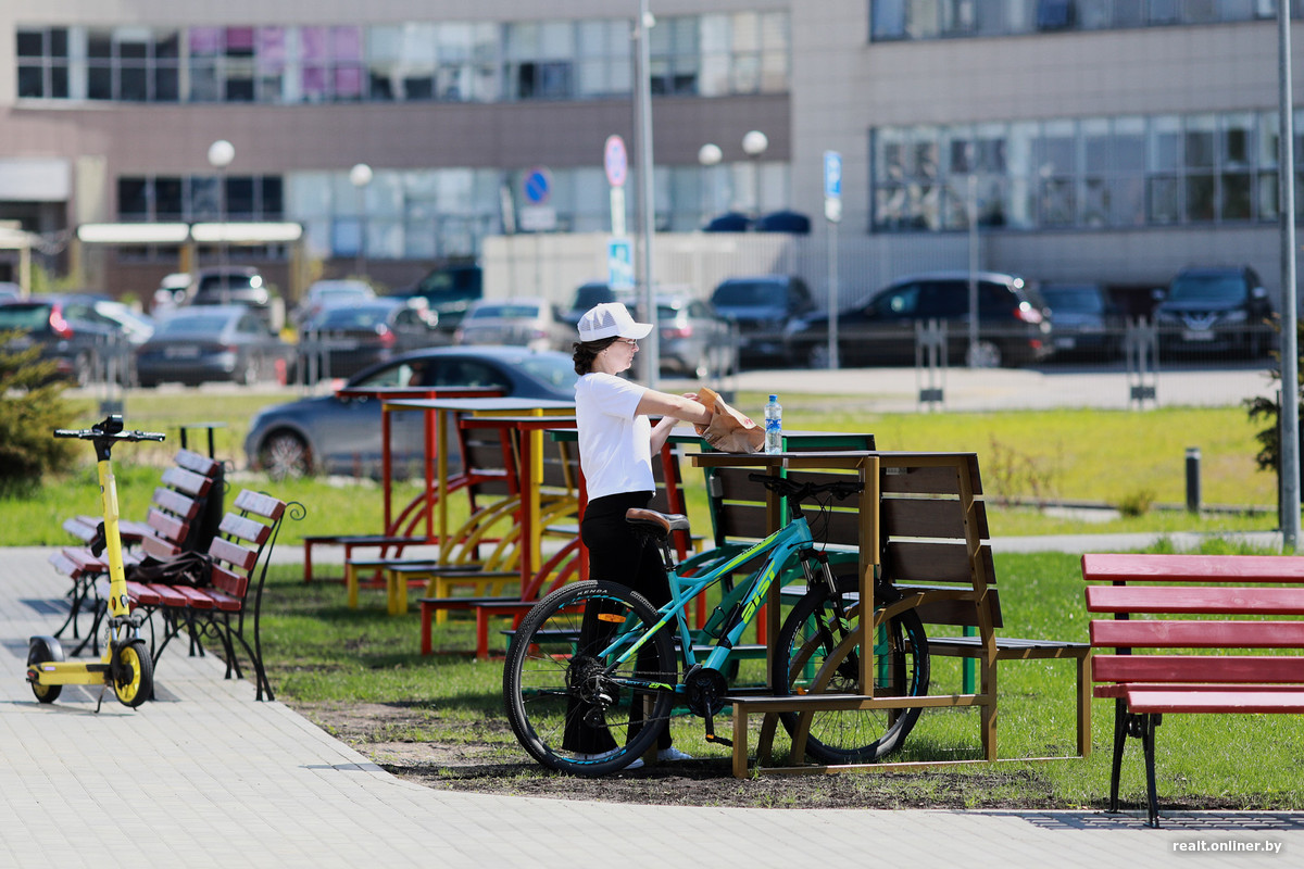— Это место мы обкатывали с момента постройки велодорожки. Начиная с 2011 года мы приезжали на велосипедах, чтобы насладиться видами Минска, — вспоминает представитель застройщика. — Так и появилась мечта создать пространство для людей, которые используют экотранспорт (велосипед, самокат, моноколесо).