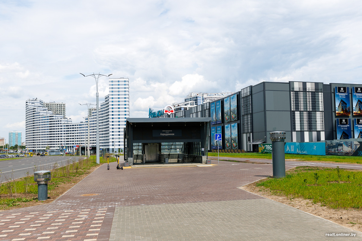 Важным объектом для «Минск-Мира» стала станция метро «Аэродромная». Согласитесь, не всем новым жилым комплексам везет обзавестись таким удобным и быстрым транспортом. Но в 2023 году на месте активно работающей сейчас станции был лишь глубокий тоннель, который очень четко виден на видео. Новые станции метро на Зеленолужской линии, в том числе и «Аэродромная», открылись в декабре 2024 года. Здесь, кстати, впервые воплотили подземный переход, который ведет из метро прямо в торговый центр.