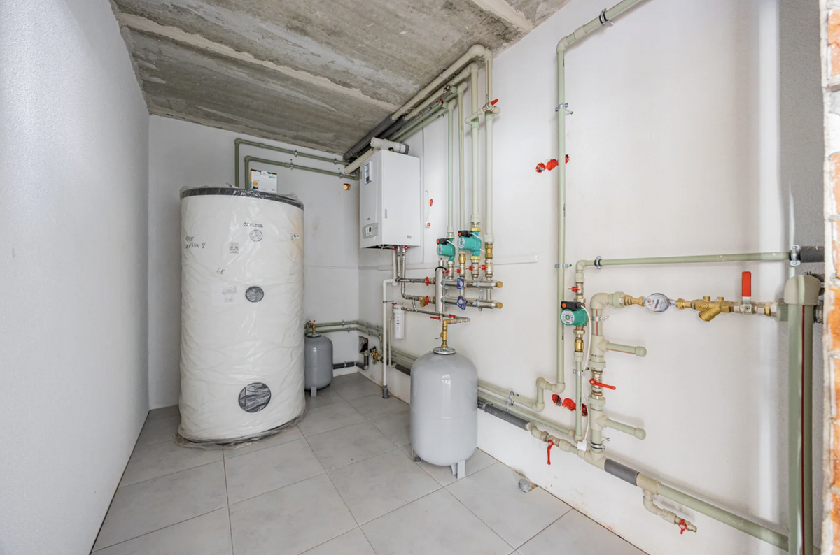 Если верить автору объявления, к дому подведены все коммуникации, в том числе асфальтированные подъездные пути. Отдельное помещение отвели под котельную. Отапливается дом газом.