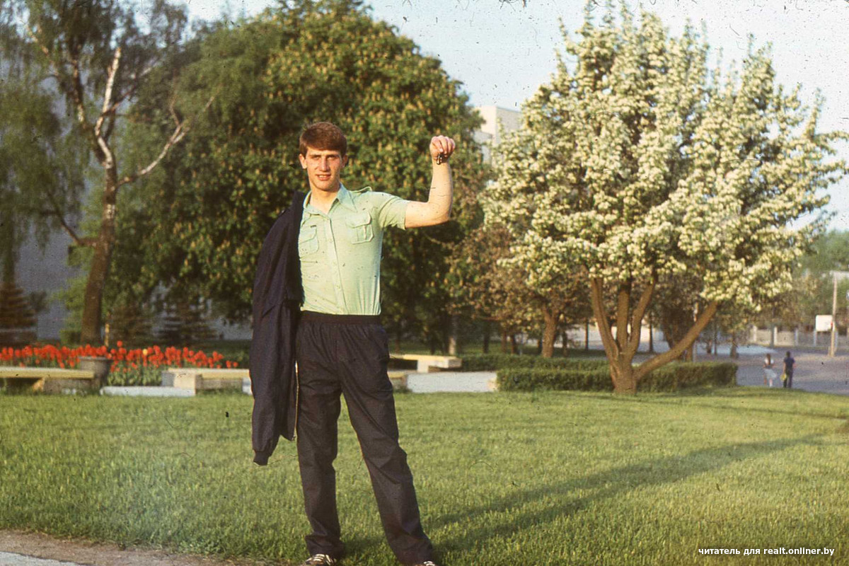 — Однажды в восьмом корпусе БПИ, сейчас это БНТУ, помыли окна. Помню, вхожу в здание с одним человеком — он идет в дверь, а я — в стекло! Одновременно и лбом, и коленкой ударился, а стекло — огромное, раза в полтора выше меня — начало падать! Попало на колено, но ему ничего! Очень плотная джинсовая ткань. Только латку пришлось пришить. Думаю, был бы в обыкновенных брюках — сейчас хромал бы. Второй раз, на Нарочи, на меня напала собака — уцепилась под то же колено, но уже со стороны связок. И тоже толстые джинсы спасли. Так что свои 180 рублей они отработали, — смеется минчанин.