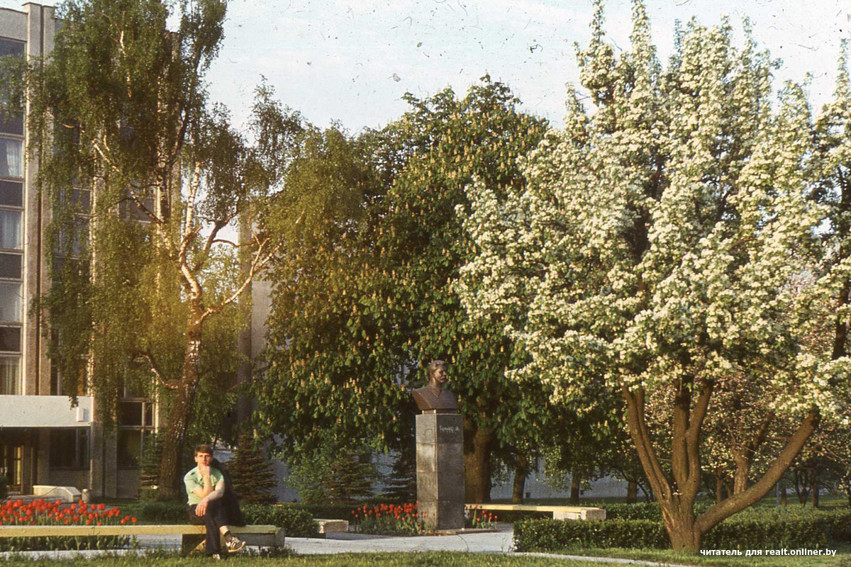 На следующем снимке, за спиной Владимира, — общежитие МТЗ по улице Кошевого. В те годы оно было облицовано голубой плиткой, теперь на здании желтая штукатурка.