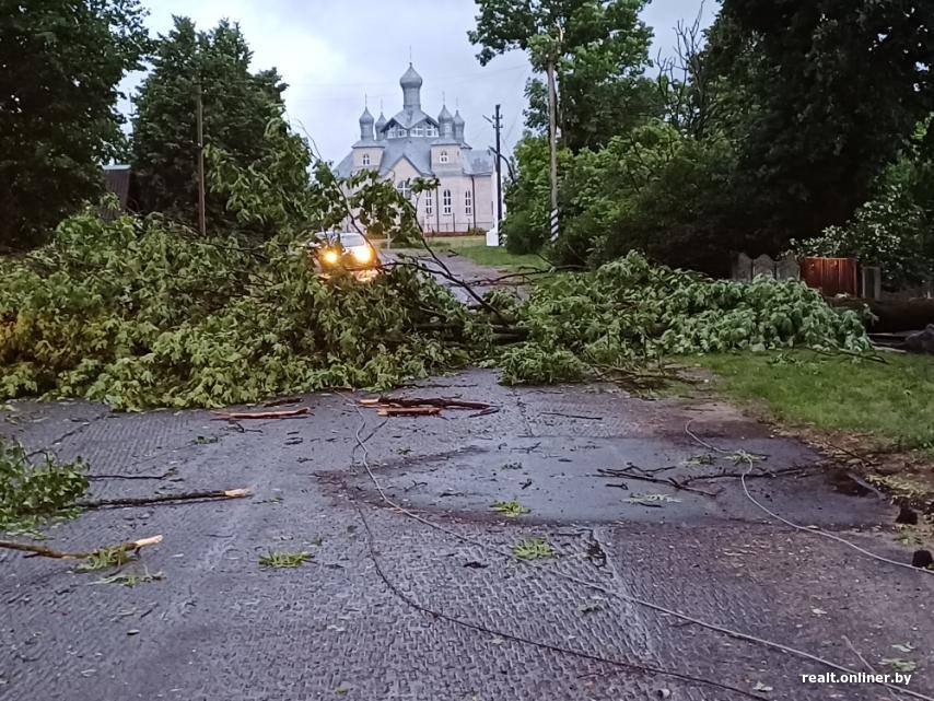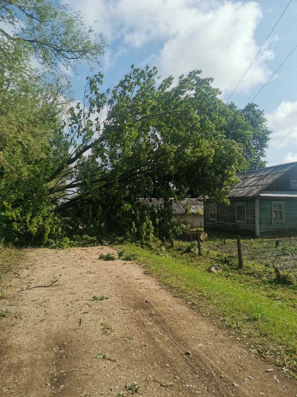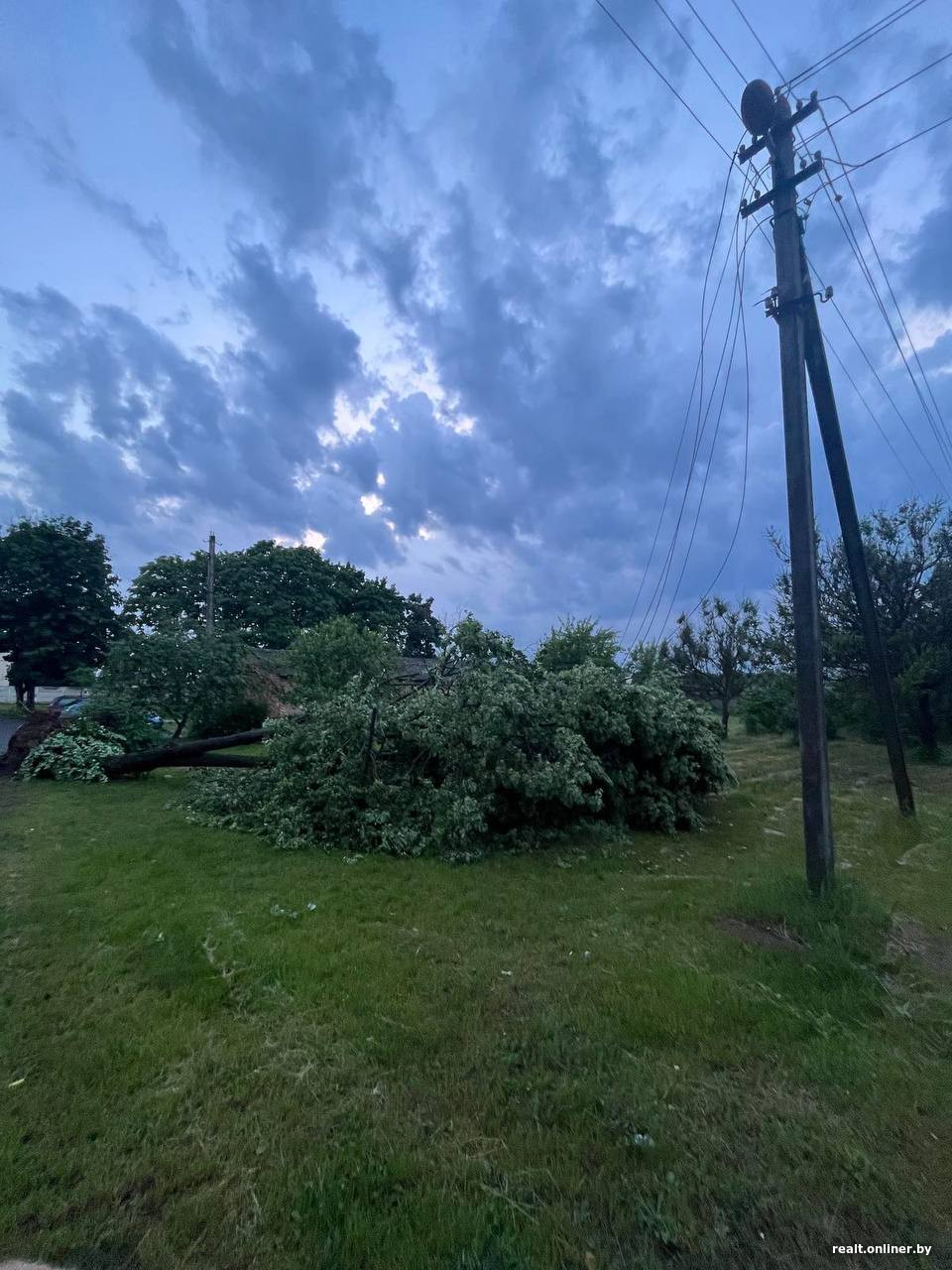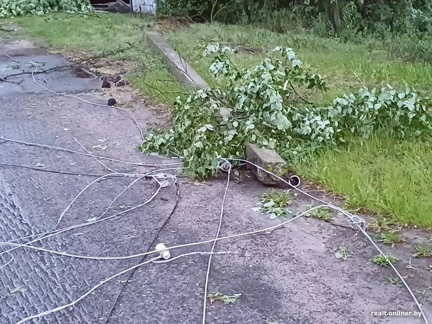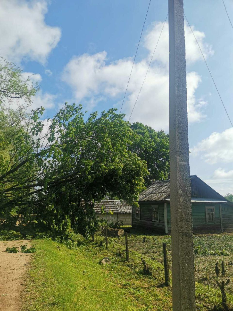 На кадрах ниже — Брестский район, где линии электропередач оборвали упавшие деревья.