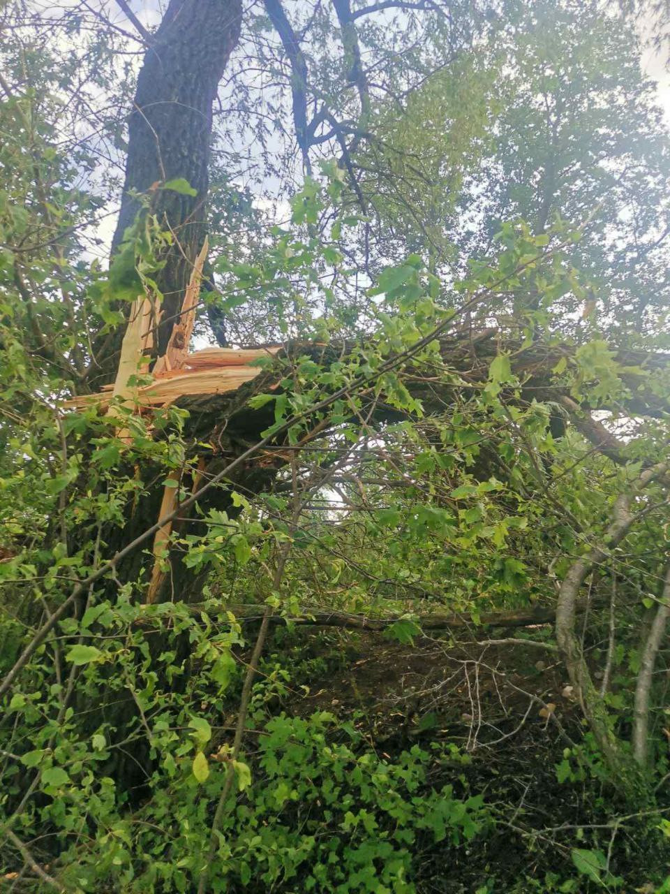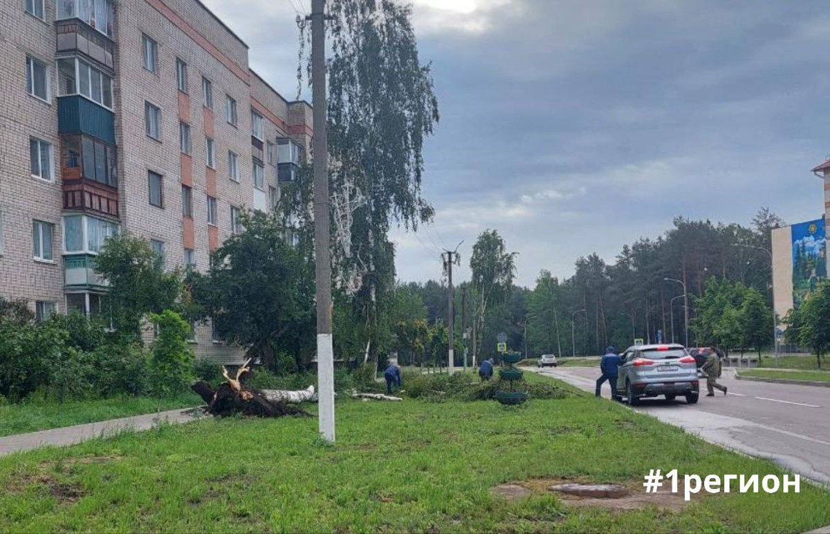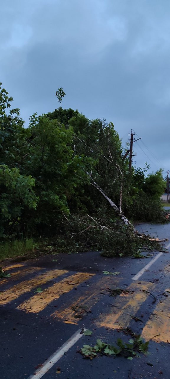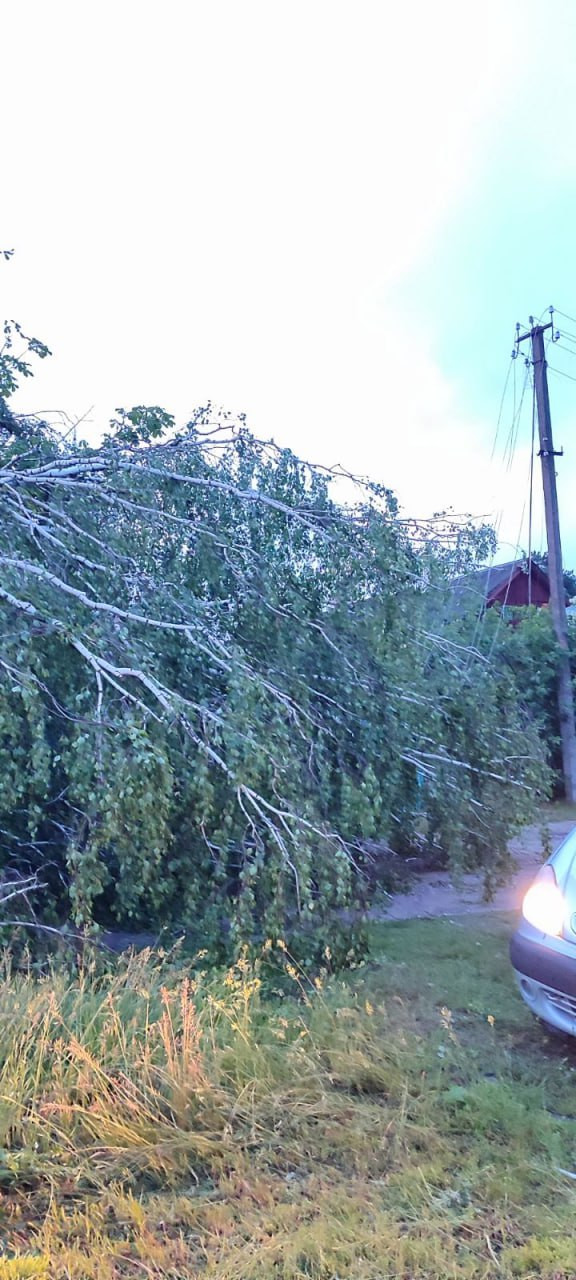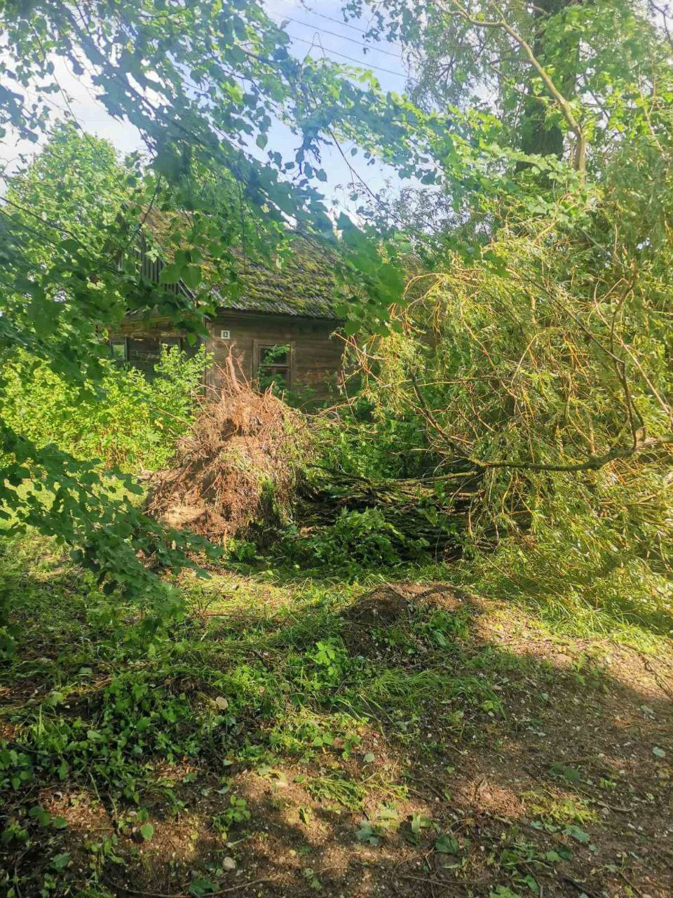 На кадрах ниже — Брестский район, где линии электропередач оборвали упавшие деревья.