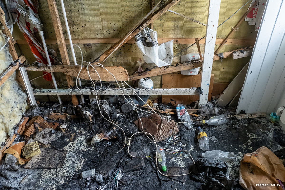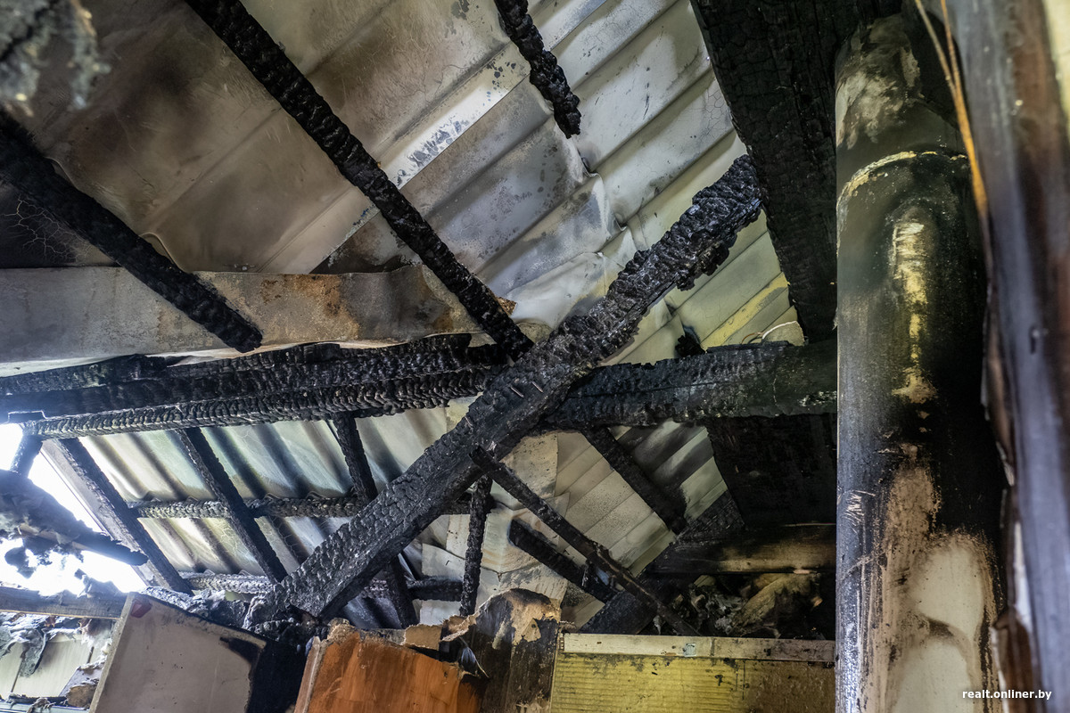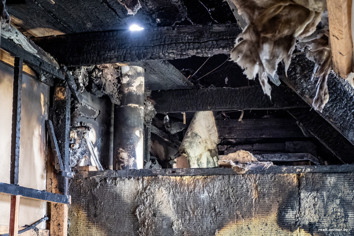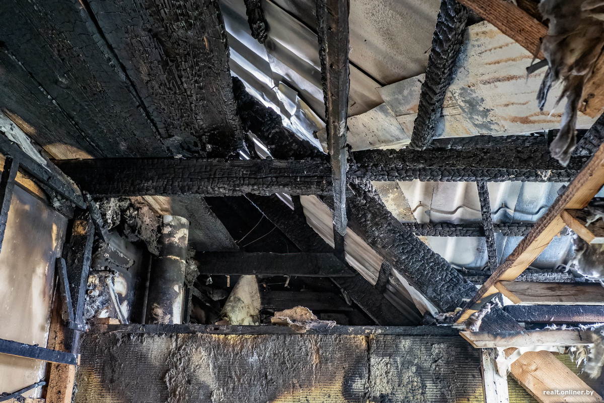 — В субботу легли спать и где-то в полпервого услышали сильный оглушающий хлопок. Свет в доме полностью выключился, мы решили, что выбило щиток, — вспоминает Надежда Михайловна. — Через пару минут почувствовали резкий запах дыма: увидели, что он повалил откуда-то сверху. Надя (дочь пенсионеров. — Прим. Onlíner) побежала в комнату к внукам, они как раз жили на третьем этаже. Тут же поняла: крыша горит открытым пламенем, нужно скорее спасать родных и бежать из дома на улицу.