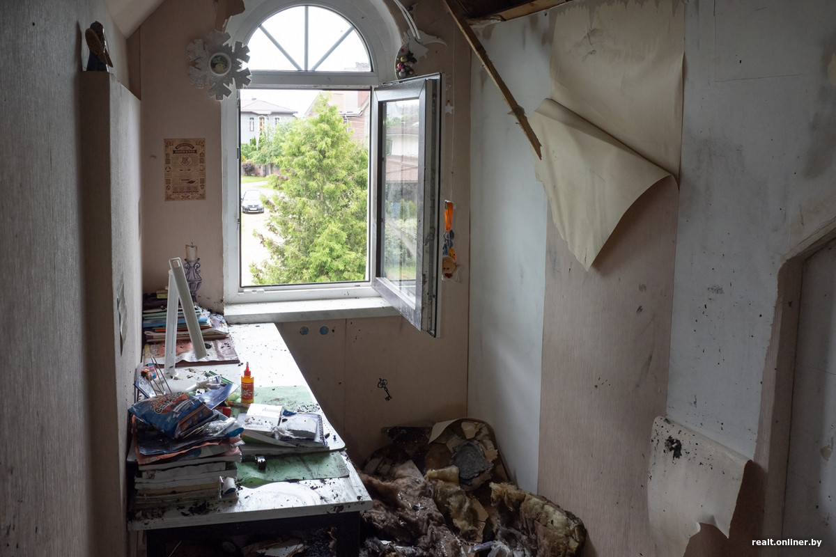 Трехэтажный коттедж на ул. Гольшанской, 36, с виду кажется вполне обычным, разве что потерявшая цвет черепица выбивается из общего вида. То, что ночью 8 июня в Зацени разгулялась страшная стихия и оставила после себя остывший пепел и мокрые угли, становится понятно чуть позже, когда переступаешь порог дома. Внутри все еще стоит едкий запах гари, который моментально цепляется за одежду и напоминает о себе весь остаток дня. Снаружи, на ухоженном участке — горы разбросанных вещей, которые удалось спасти во время пожара. Супруги — Владимир Аксентьевич и Надежда Михайловна с детьми, а чуть позже и с внуками — прожили в коттедже больше 20 лет и никогда не думали, что всего за пару часов их жизнь перевернется с ног на голову.