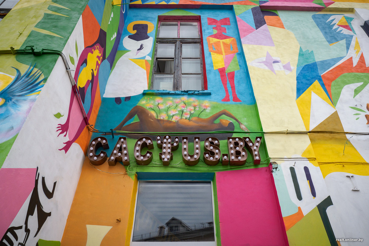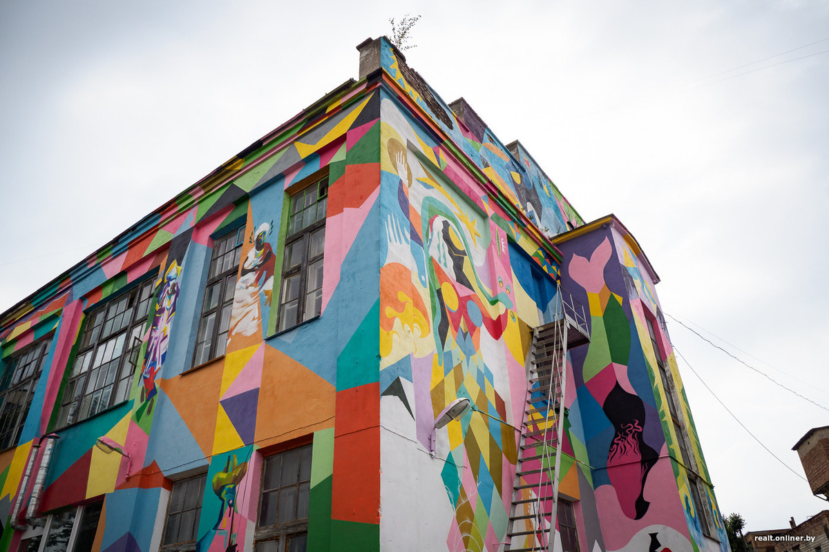 Этот большой и яркий мурал появился в Минске почти десять лет назад. В 2017-м, когда на улицах столицы гремел фестиваль Vulica Brasil, художник Dedablio взялся за фасады непрезентабельного на тот момент здания на Машерова, 9 (кто ж знал, что двухэтажка со временем превратится в популярный культурный центр «Корпус»). В своей работе автор объединил бразильских духов Ориша с божествами белорусской мифологии. Получилось свежо и оригинально.