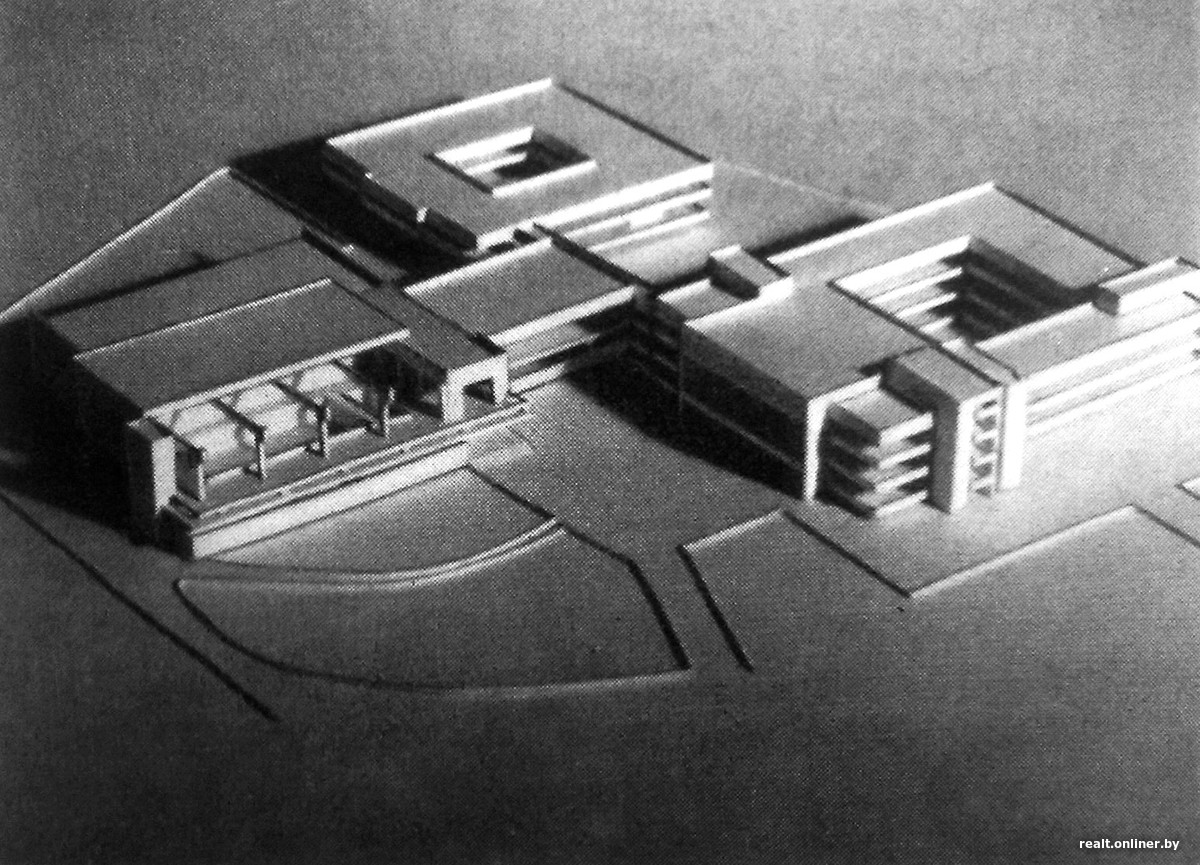 К сожалению, парадный ансамбль въезда в Минск был реализован не до конца. В 1970-е на противоположной стороне Ленинского проспекта планировалось создание университетского городка для БГУ. Его новый главный корпус должен был выглядеть следующим ошеломительным образом.
