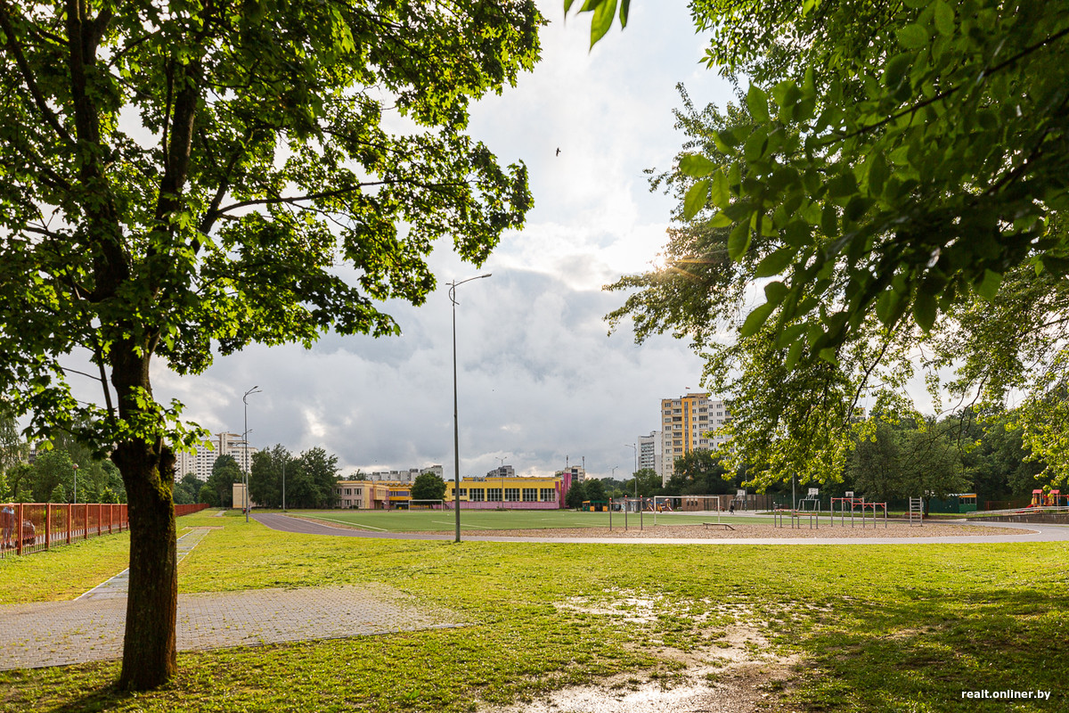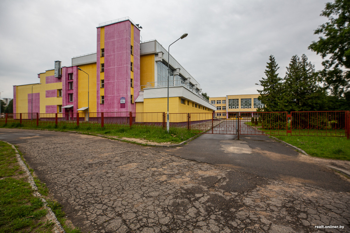 Все детские сады и одна из школ типовые, популярных в Минске конца 1960-х — первой половины 1970-х серий. Но вот вторая школа (на 40 классов), примыкающая к районной водно-парковой зоне, построена по экспериментальному проекту Э. Гольдштейна, А. Соболевского и других. Учебные корпуса объединены в один блок вокруг внутреннего дворика. К нему примыкает спортивный корпус с плавательным бассейном.