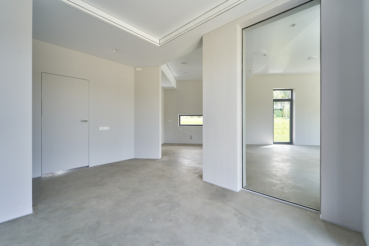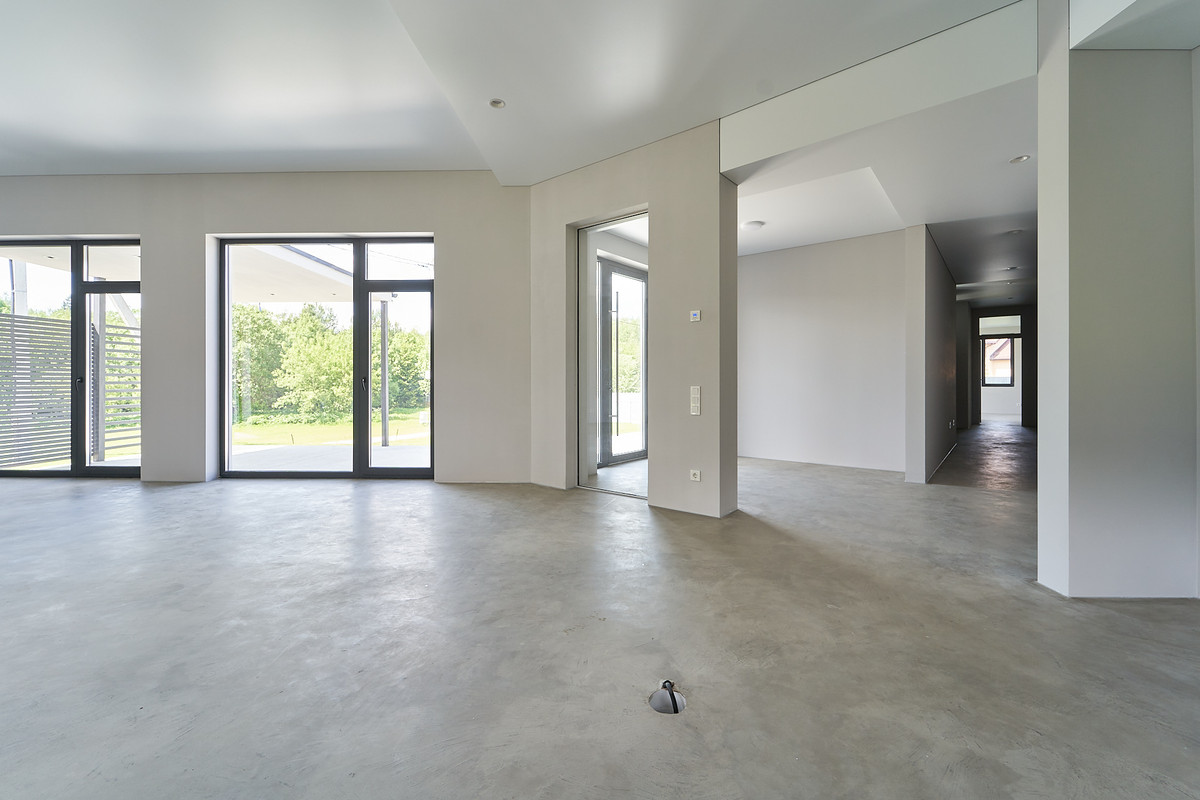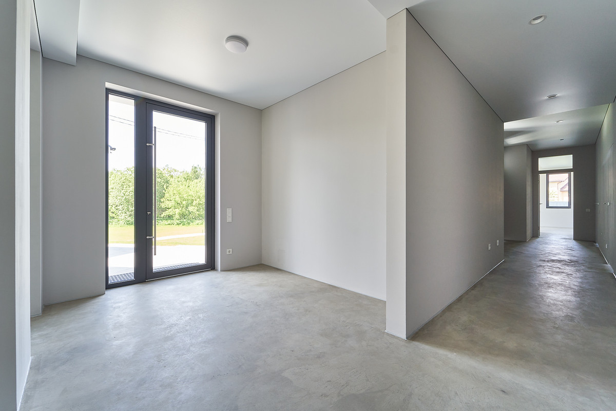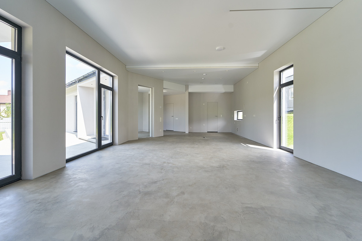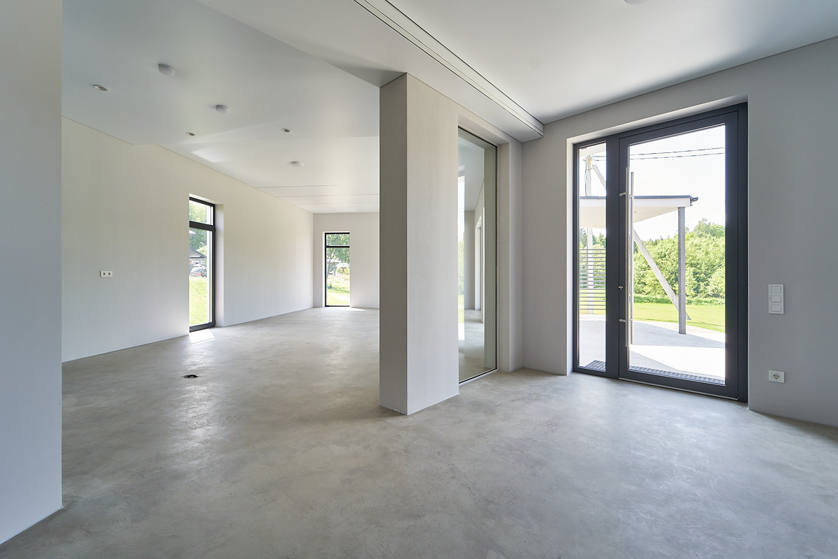 Внутри нет ничего кроме минималистичных стен. Все остальное владелец должен расставить самостоятельно, основываясь на своем чувстве прекрасного: