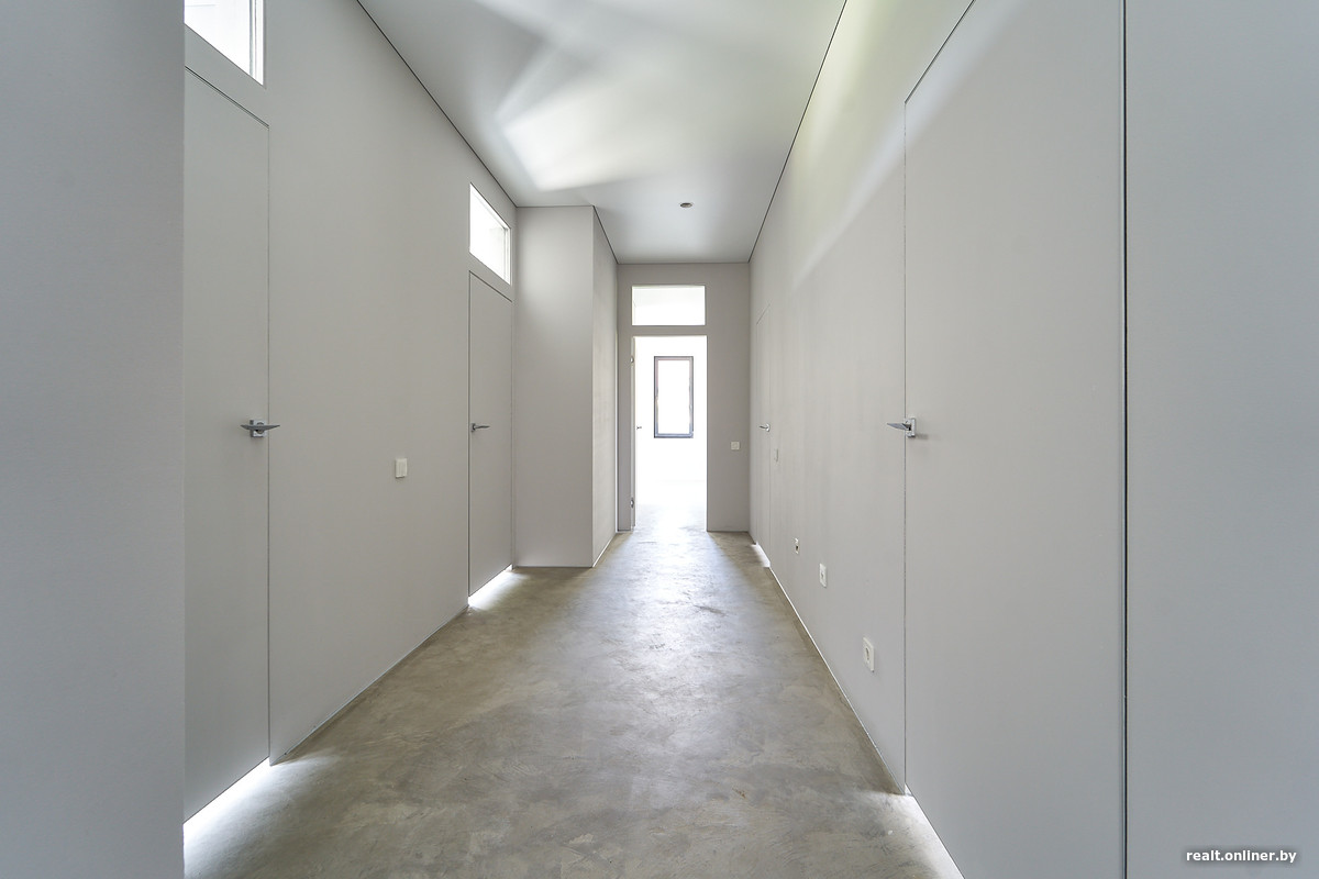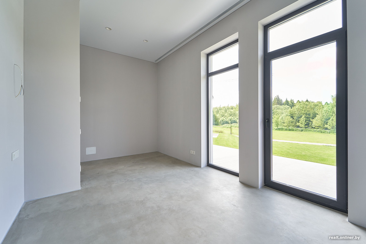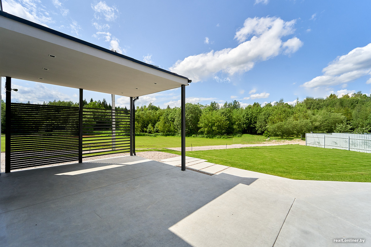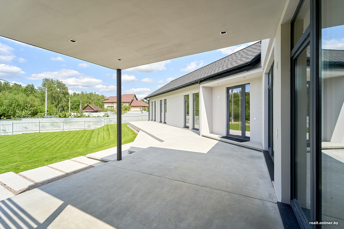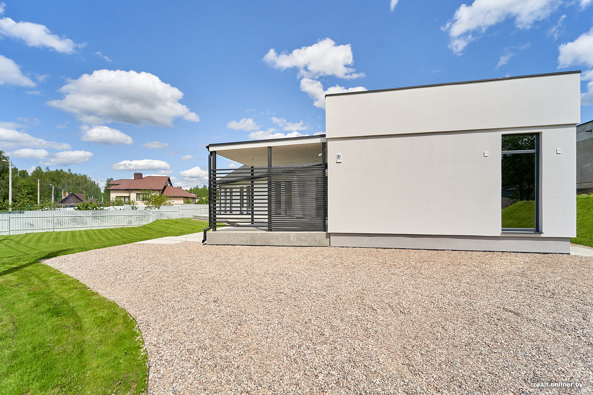 Минималистичная «коробка», серо-белые оттенки, окна в пол, а вокруг — сочный зеленый газон и густые деревья. Архитектор этого загородного коттеджа сравнивает его со скульптурой из мрамора, от которой филигранно отсекли все лишнее и оставили только саму суть. Объект недавно был выставлен на продажу в сервисе Onlíner. Что же в нем такого особенного?