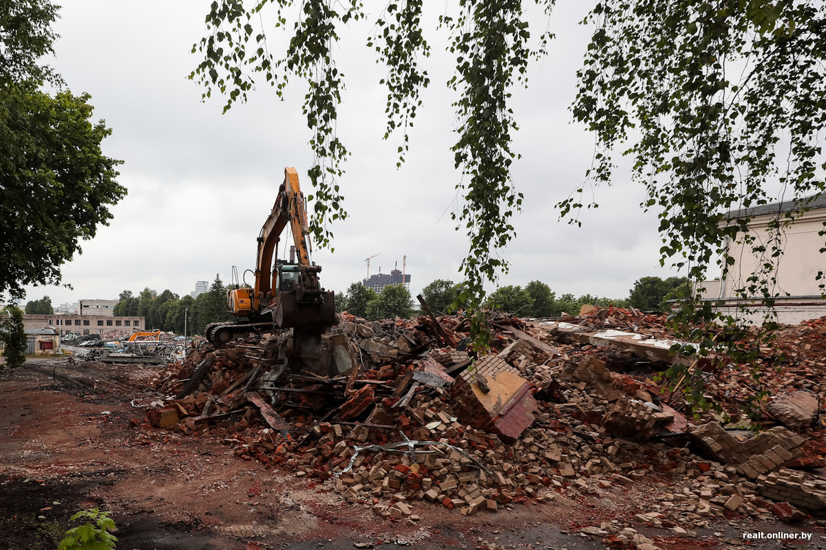 Ну что, готовимся к тому, что в конце года в Минске начнет расти новый жилой комплекс. Спросите, откуда этот оптимизм? Все просто: на улице Волгоградской стартовал снос зданий электромеханического завода «Агат». Корпуса, стоявшие на своем месте с 1950-х, прямо сейчас разлетаются на тысячи осколков. «Строительная техника уже ломает здания, кучи мусора высотой с два этажа», — сообщил нам читатель Андрей.