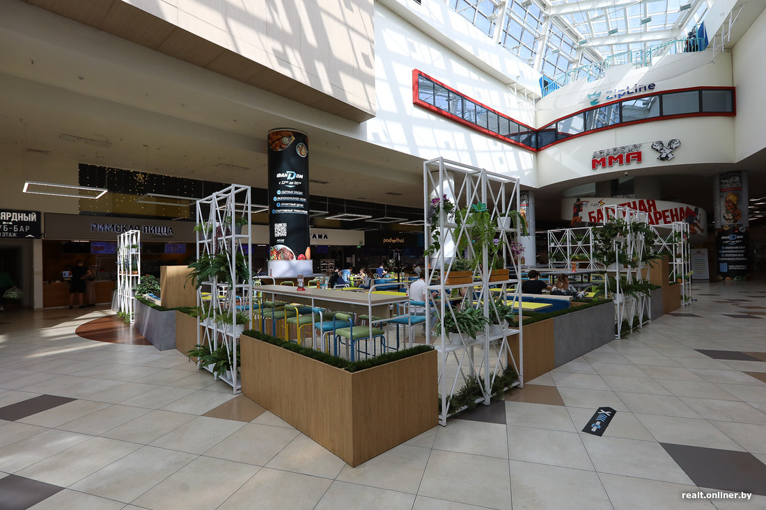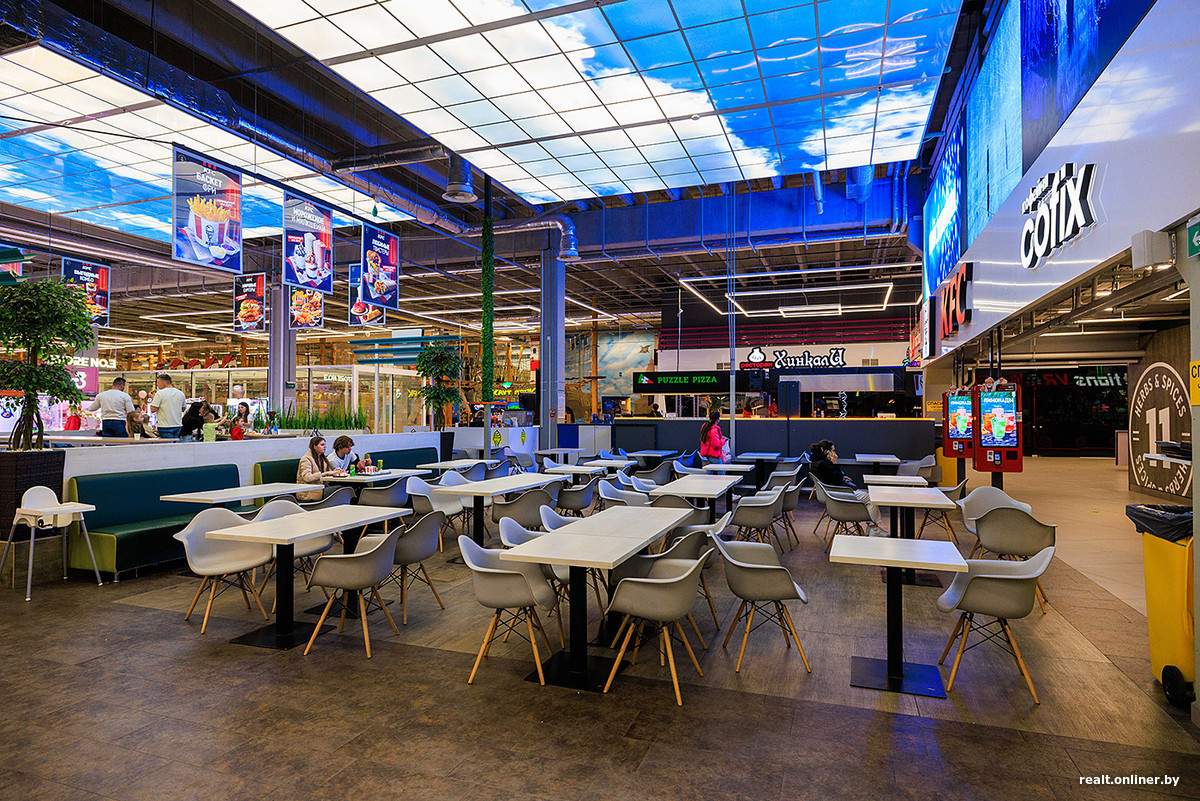 Но у Arena City есть свои козыри. На втором этаже работает фуд-корт с кофейнями, суши, пиццей. Из интересного — автосалон ShikAvto, кинотеатр Silver Screen, магазин мерча и ресторан хоккейного клуба «Динамо-Минск» (близость к «Минск-Арене» обязывает) и разнообразные детские развлечения.