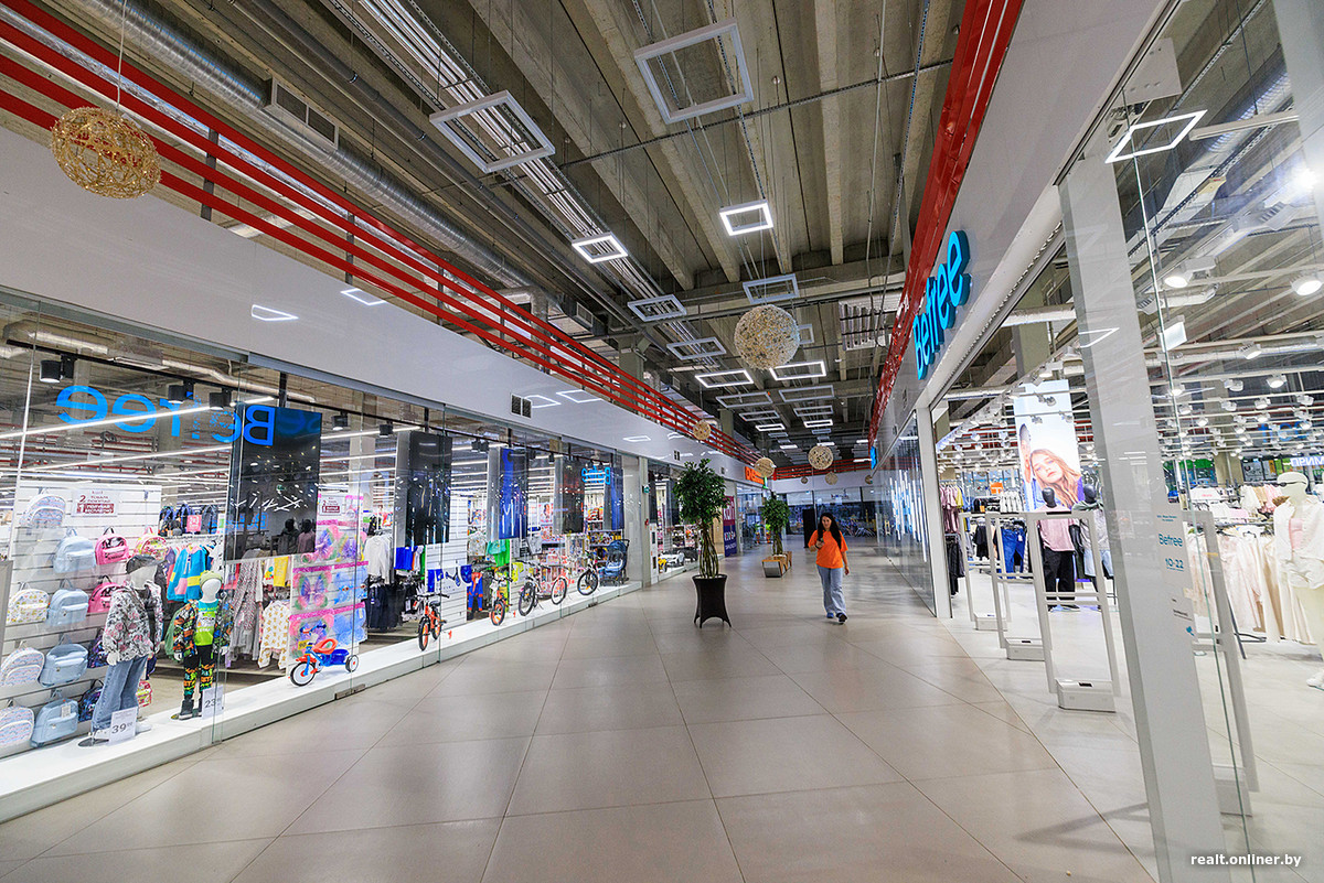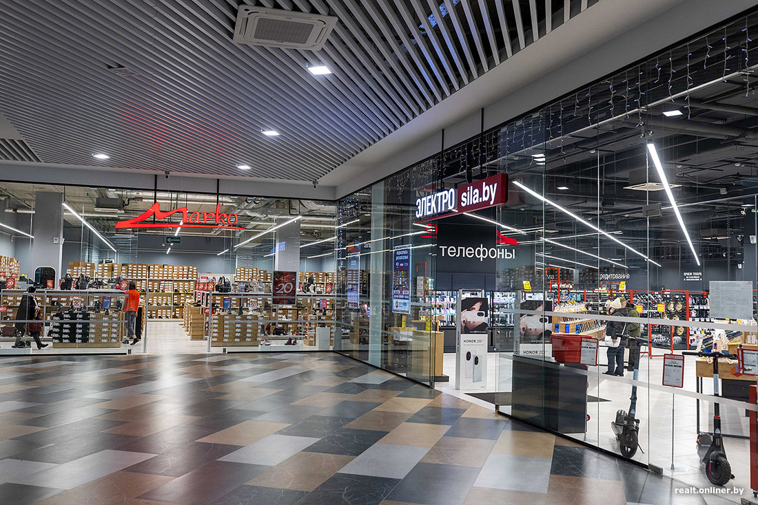 Arena City задумывался как премиальный ТРЦ на проспекте Победителей — с эффектным стеклянным фасадом, кинотеатром и брендами «не для всех». Но на практике проект не стал хитом: район оказался не самым густонаселенным, а поток покупателей — ниже ожидаемого. В итоге крупных арендаторов осталось не так много: гипермаркет Green, фитнес-клуб Gym24. Все остальное — это в основном небольшие магазины с разноплановым ассортиментом: от одежды и обуви до товаров для дома.