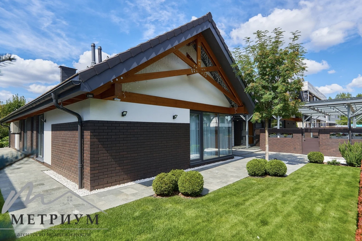 Зато 524-метровый дом с собственным бассейном ждет новых жильцов на улице Глебова — в частном секторе за «Маяком Минска» и элитным ЖК «Парк Сити». Судя по объявлению, коттедж был построен в 2018 году, стены собраны из кирпича. Здание одноэтажное и спроектировано так, что кажется легким, воздушным (и это при таком-то метраже). Небольшой, но красивый и ухоженный участок идет бонусом.