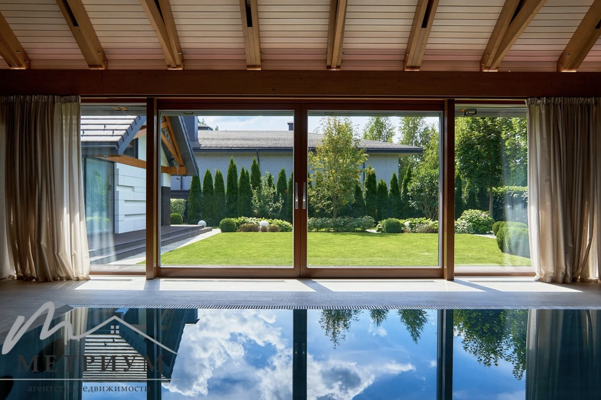 «Площадь участка — 15 соток. Коттедж расположен в закрытом поселке на берегу — тишина, безопасность и живописные виды, охраняемая территория, видеонаблюдение. Внутри дома подготовлена площадка под бассейн. Элитное окружение. Для вашего комфорта в поселке находится: закрытая беседка с кухней, большой зоной для барбекю, караоке, искусственный зарыбленный водоем, дорожки для прогулок, теннисные корты, детские площадки. Идеальный вариант для тех, кто ценит уединение, природу и современный уровень жизни», — сообщает агентство, курирующее объект.