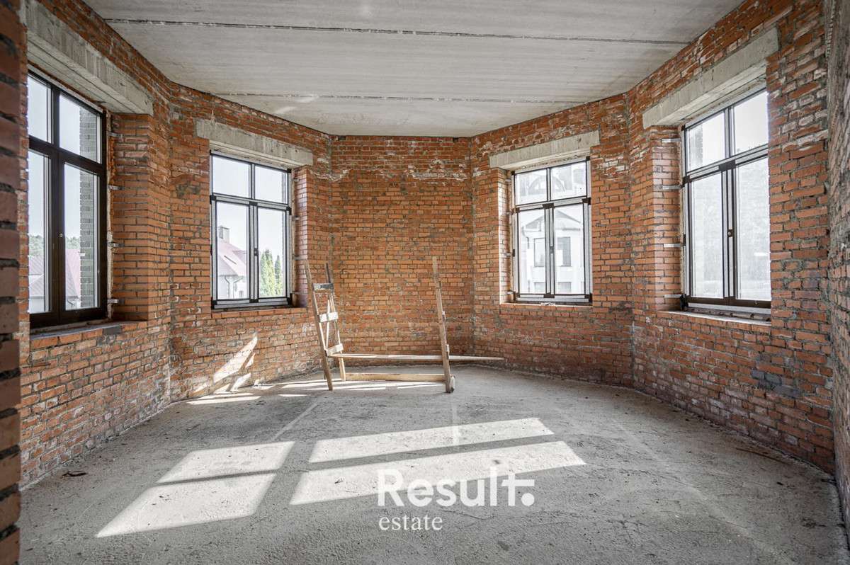 Коттедж чуть старше, чем предыдущий «трехмиллионник», — 2016 года постройки. По крайней мере, так указано в объявлении. Также собран из кирпича. Метраж — хватит детям, внукам и дальним родственникам: 1366 «квадратов»! Куда столько, придумаете сами. Ведь собственник отделкой не занимался. Внутри — голые стены (зато точно видно, что возведены они из кирпича).
