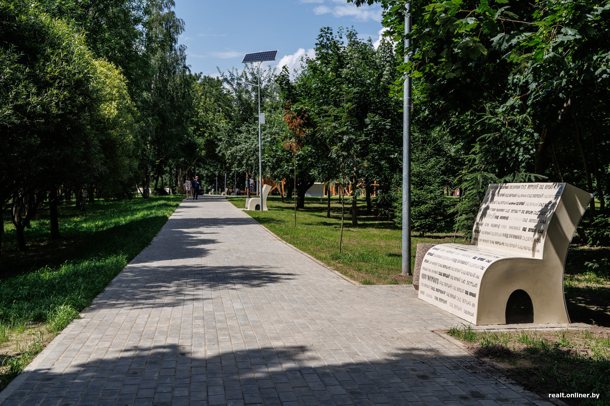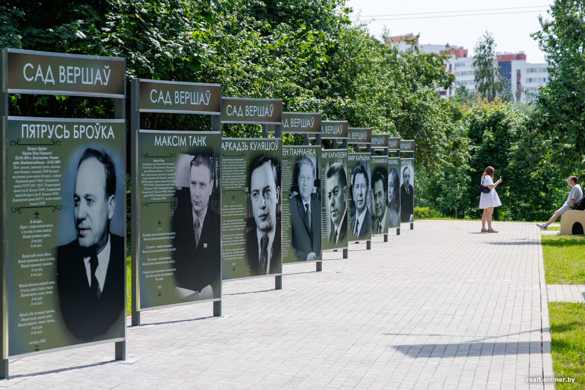 Весной этого года стало известно, что в Минске появится новый парк. Тематический. Зеленую зону в границах улиц Алибегова — Л. Сапеги — Я. Брыля — проспекта Дзержинского решили превратить в «Сад вершаў». Сообщалось, что территорию площадью 43 гектара будут преображать в течение двух лет. При этом за первый этап взялись раньше, чем кто-либо мог предположить.