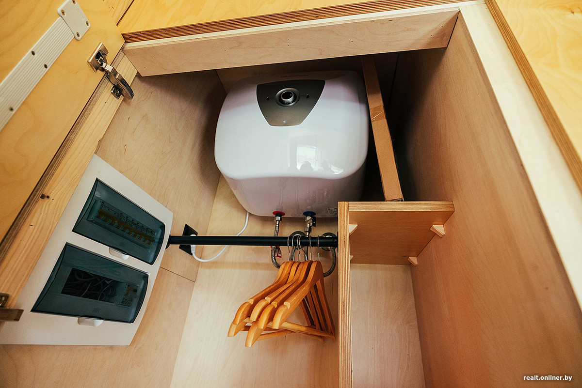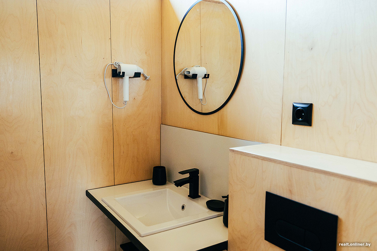 — Я по-прежнему придерживаюсь концепции глэмпинга. Если переводить дословно, то это гламурный кемпинг — отдых на природе, но со всеми городскими удобствами. Поэтому главной моей задачей было вместить в это микрожилье все, что есть в номере отеля. Посуда, полотенца, пледы, настольные игры, книги и даже эксклюзивный чай из трав, собранных здесь, в Браславском районе, — мы старались позаботиться обо всем.