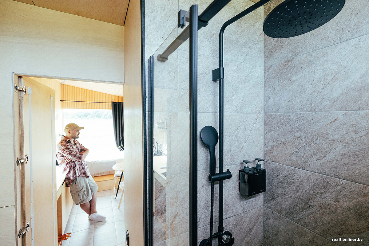 — Например, мы поняли, что людям важно, чтобы терраса была под крышей. Поэтому здесь везде есть навесы, под которыми можно спрятаться от дождя. Окна выходят либо на озеро, либо на поле (иногда на все сразу). Можно выбрать, с каким видом хочешь проснуться.