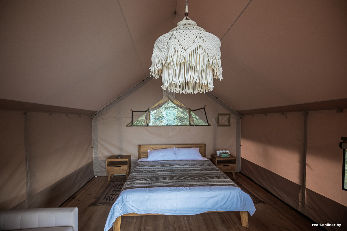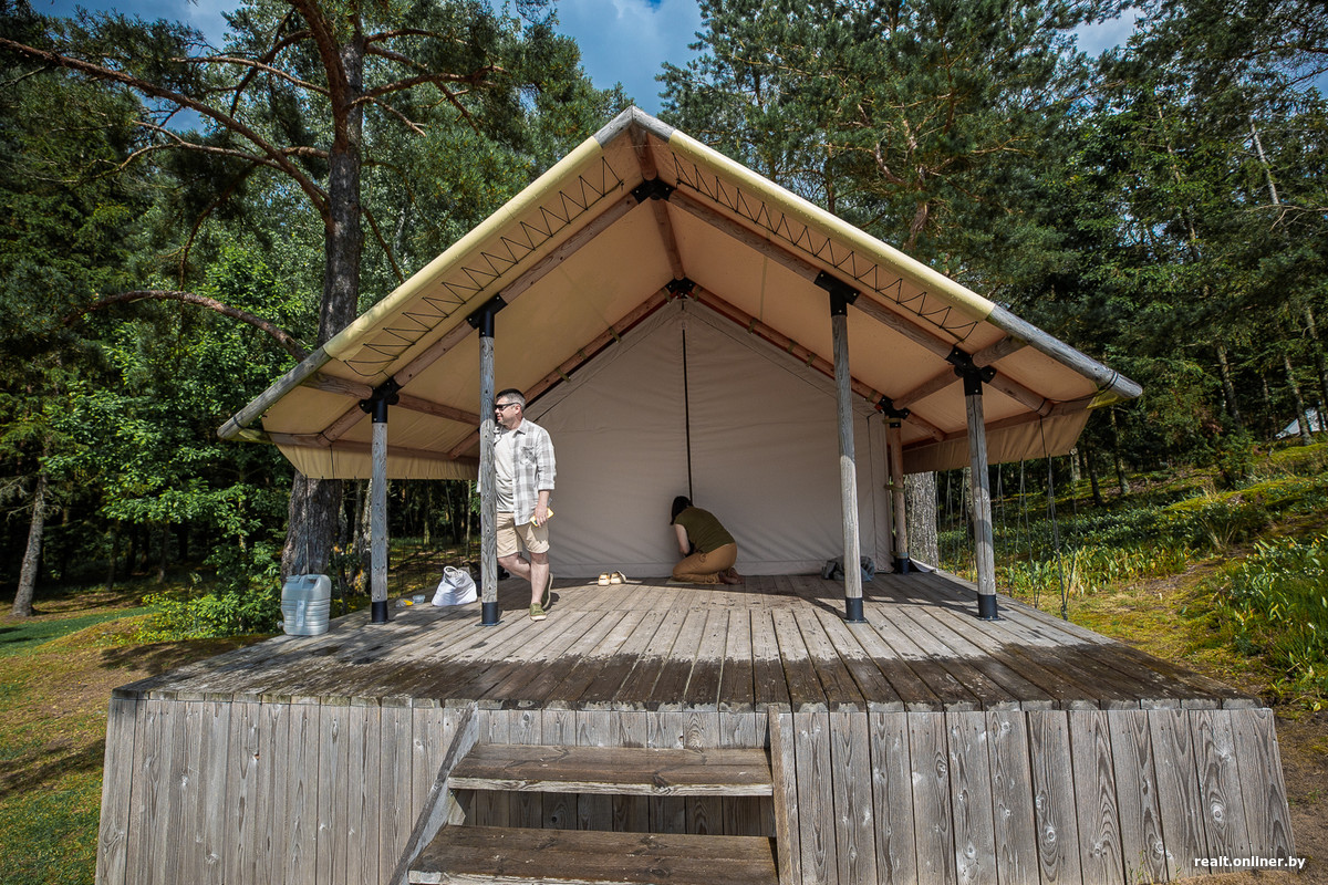 Скажи кому-нибудь лет 30 назад, что отдых в палатке может быть «на богатом», — не поверили бы. Дикарями ехали, чтобы в первую очередь сэкономить: не платишь за жилье — значит, бережешь бюджет, растягивая отпуск на подольше. Но в XXI веке все изменилось. Переночевать в палатке (гламурной, конечно же, не обычной) может стоить столько же, сколько и в пятизвездочном отеле. И желающие отдать деньги за комфортное слияние с природой находятся: шатры не страдают от одиночества. Улучив момент, когда дождь отступил, Onlíner отправился в белорусский глэмпинг — место, где традиционно спартанский отдых «проапгрейдили» до роскошного.