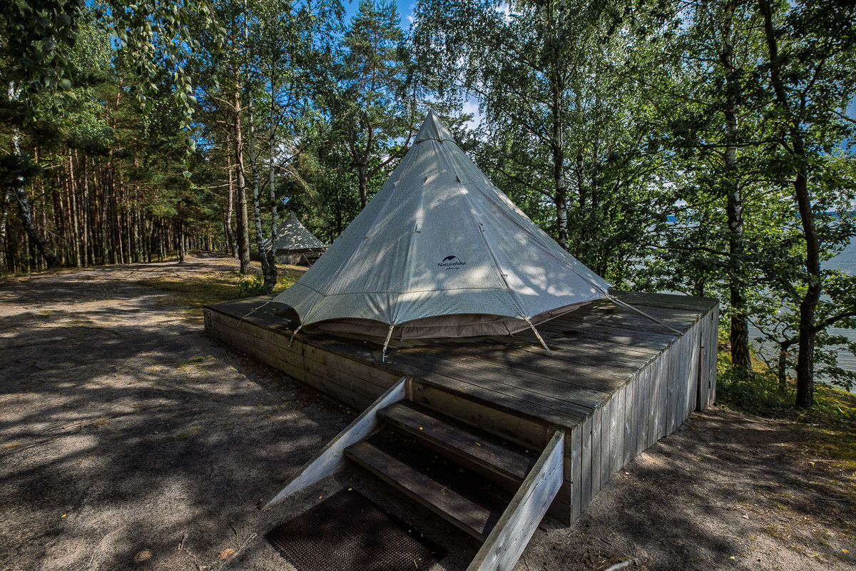 Берега Вилейского водохранилища начали обрастать кемпингами более десяти лет назад. Тогда все было просто и без изысков: щитовые домики, обычные беседки, зона для гриля, но, самое главное, — доступ к душевым и биотуалетам. Крайне важная опция для «неженок», стремящихся отдыхать на природе, но всем сердцем противящихся «первобытному строю».