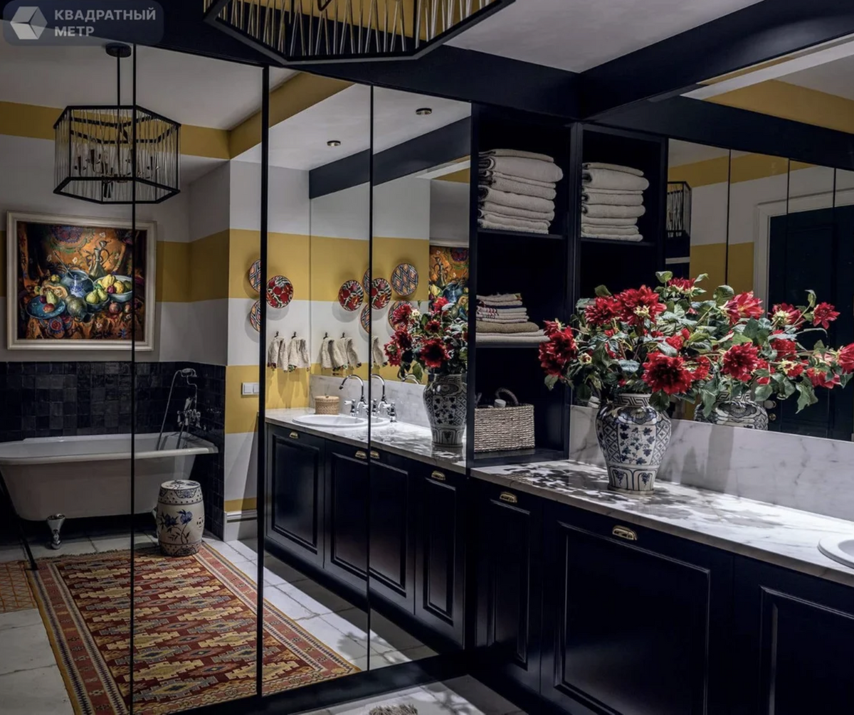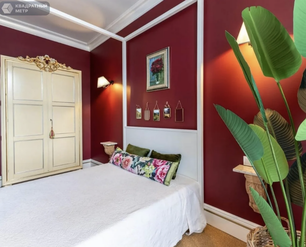 Пространство в каждой из зон продумано до мелочей. Если верить автору объявления, в интерьере есть антиквариат: картины, комод конца XVIII века, кресла, банкетка и тумбы, которые бонусом достанутся новым владельцам.