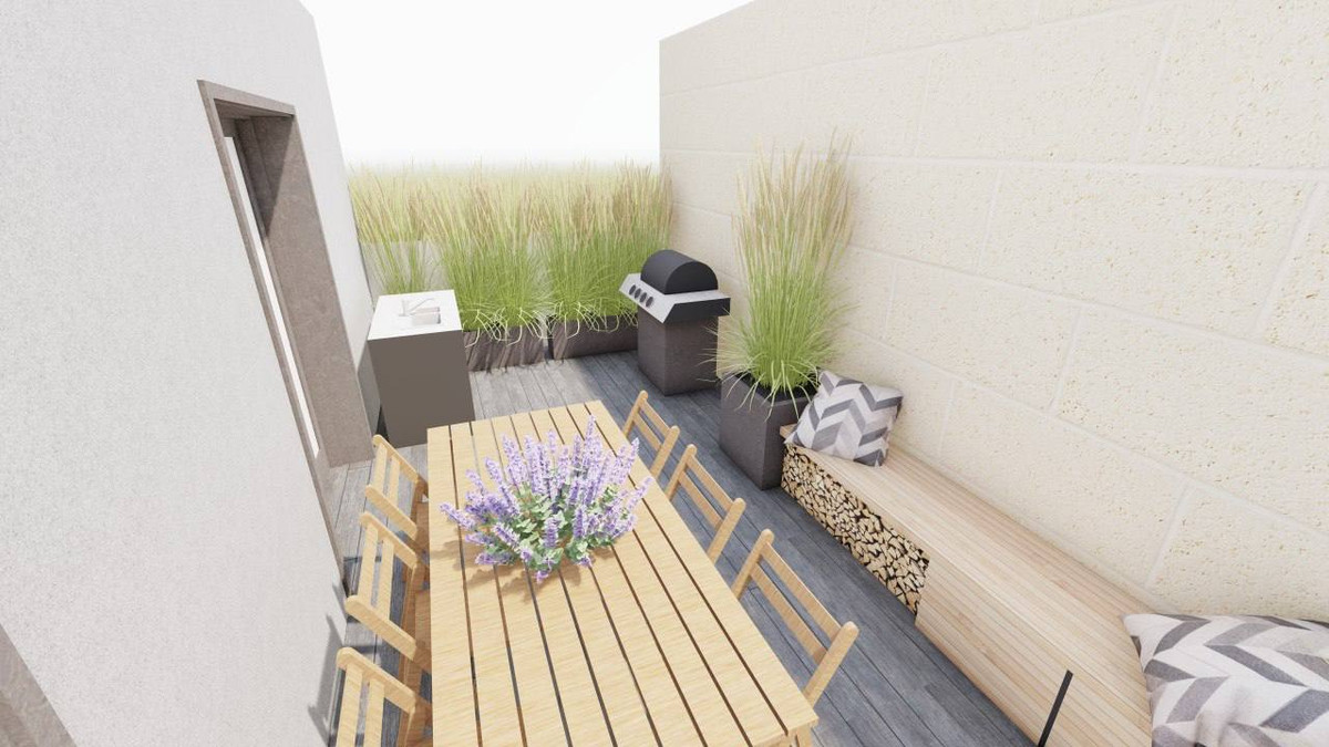 — Если рядом соседи, ставим кашпо с озеленением, которое визуально ограничивает конкретную террасу. Но не создаем какую-то сплошную стену, а именно мягко декорируем для уюта.