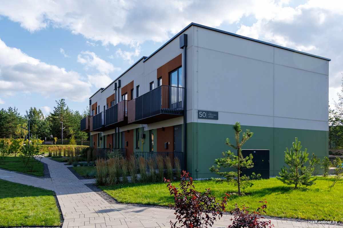 Эти таунхаусы из нулевых помнят многие минчане. В свое время квартал из симпатичных домов стал одним из самых интересных проектов за «Экспобелом», в двух шагах от кольцевой. Участок земли вблизи Куропат достался в 2000-х компании «Вигеврострой» (подразделение «Арэсы-Сервис»), которая задумала возвести на голом поле таунхаусы и пятиэтажки в общей сложности на 180 тысяч «квадратов». Вместе с ними планировалось построить соцобъекты, среди которых — садик, школа, медцентр и кафе. Не все в этой истории шло гладко: застройщик ушел в ликвидацию, оставшиеся сельхозугодья взял под свое крыло МАПИД. Он же в теории и доведет до ума нереализованные проекты из прошлого. Те таунхаусы и пятиэтажки, что все-таки увидели мир, местами оказались с проблемами. Несмотря на это, «квадрат» в симпатичных таунхаусах был и остается востребованным. Еще лет пять назад трехуровневую квартиру на 250 квадратных метров с гаражом и участком можно было купить за 180—195 тысяч по курсу. Сегодня ценник вырос в два раза.