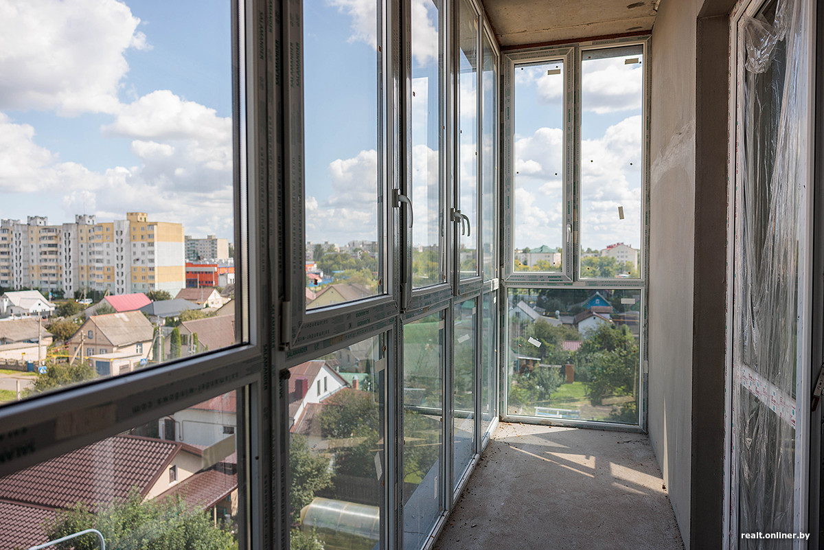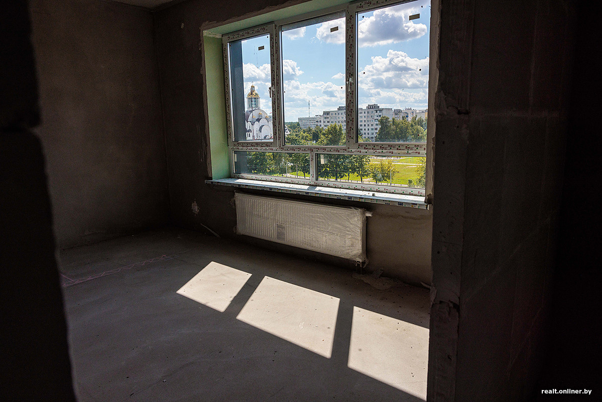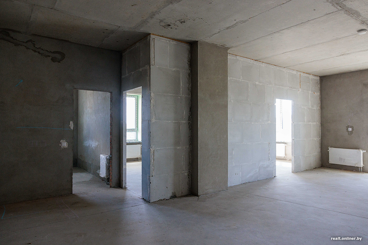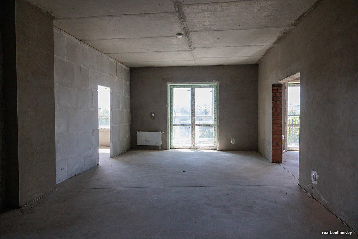 Сейчас в доме продаются три квартиры: одна двухуровневая и две четырехкомнатные. Они достались банку, который кредитовал застройщика «Антал-Солигорск». Компания сейчас в процессе ликвидации, а недвижимость забрали за долги. Изначально у банка в собственности было семь квартир, теперь осталось лишь три, и все они выставлены на аукционы. Нам удалось попасть внутрь — на просмотр пришли не только мы, но и потенциальные покупатели: семья с маленьким ребенком, молодой человек, мужчина лет 50. Так что интерес к жилью есть, причем у абсолютно разных людей.