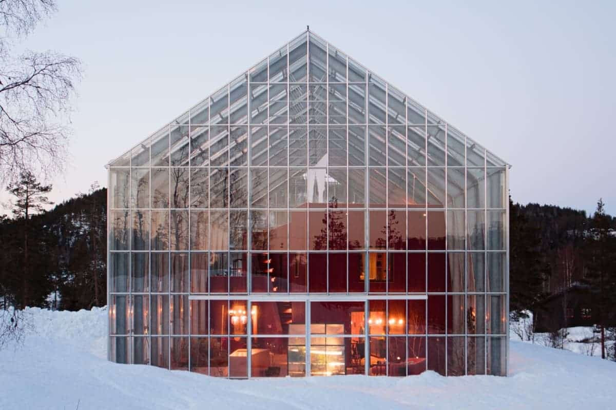 В данном случае теплица позволила создать промежуточную климатическую зону между собственно домом и внешней окружающей средой. В этой зоне можно было выращивать растения, фрукты и овощи, урожая которых в ином случае в суровом норвежском климате добиться или сложно, или вовсе невозможно. А с теплицей можно было добиться более длительного вегетационного периода. Вторым достоинством решения стало создание пространства, позволяющего наслаждаться жизнью на открытом воздухе, даже во время плохой погоды. Осенью теплица защищена от типичных для Норвегии дождя и пронизывающего ветра.
