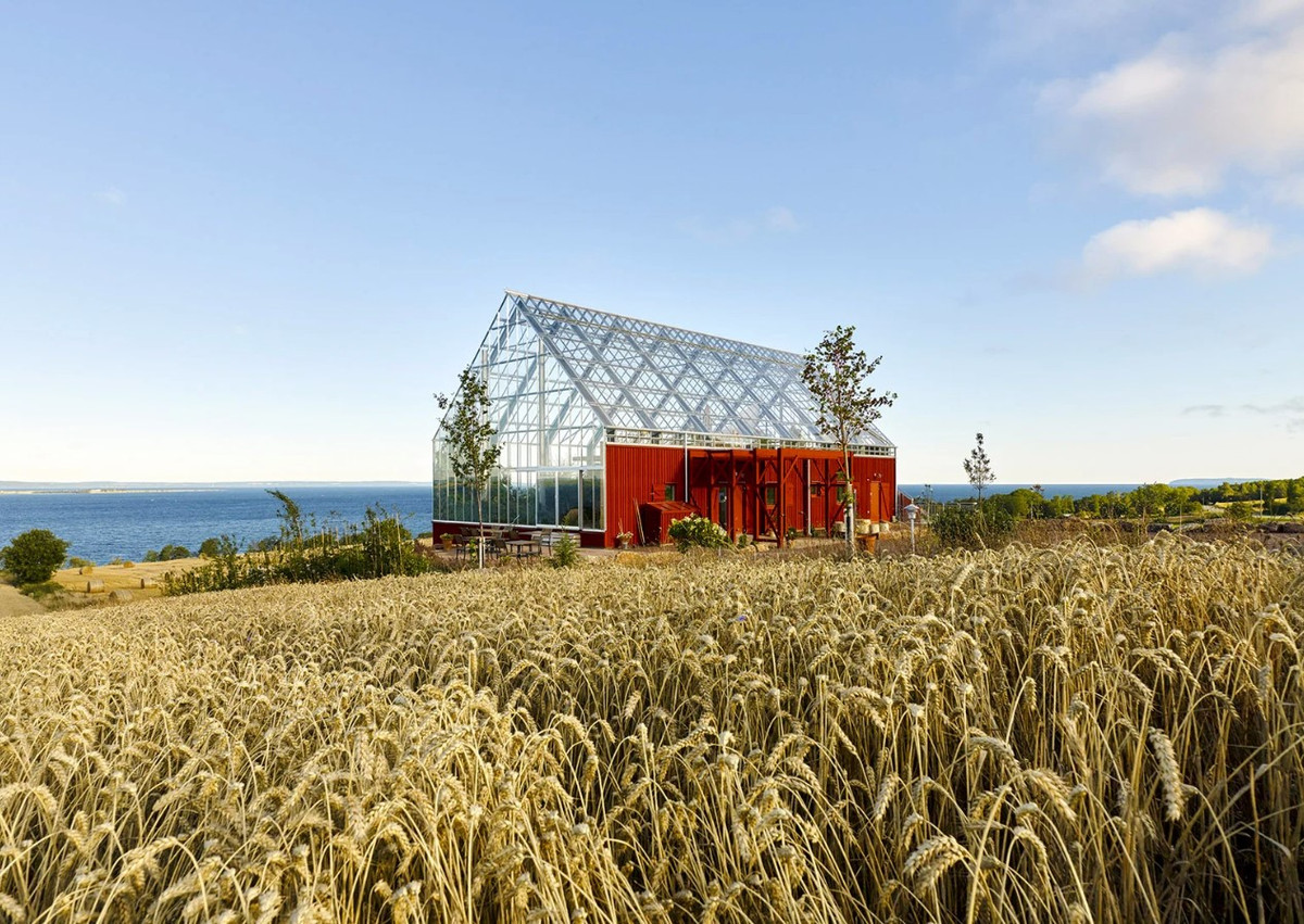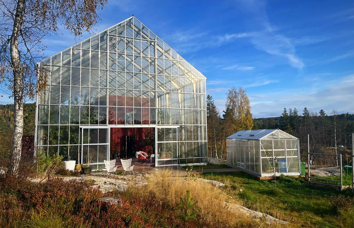 Издалека это здание напоминает совершенно заурядную теплицу. Лишь при приближении становится понятно, что она очень крупная для типового сооружения такого рода. И точно: под стеклянной оболочкой, помимо растений, находится темно-красный двухэтажный жилой дом. Его спроектировала для своей семьи норвежский архитектор Маргит-Кристин Солибакке Клев. Решение лишь на первый взгляд кажется эксцентричным. На самом деле, хозяйка комплекса хотела решить две связанные друг с другом очень понятные задачи, актуальные и в белорусских условиях.