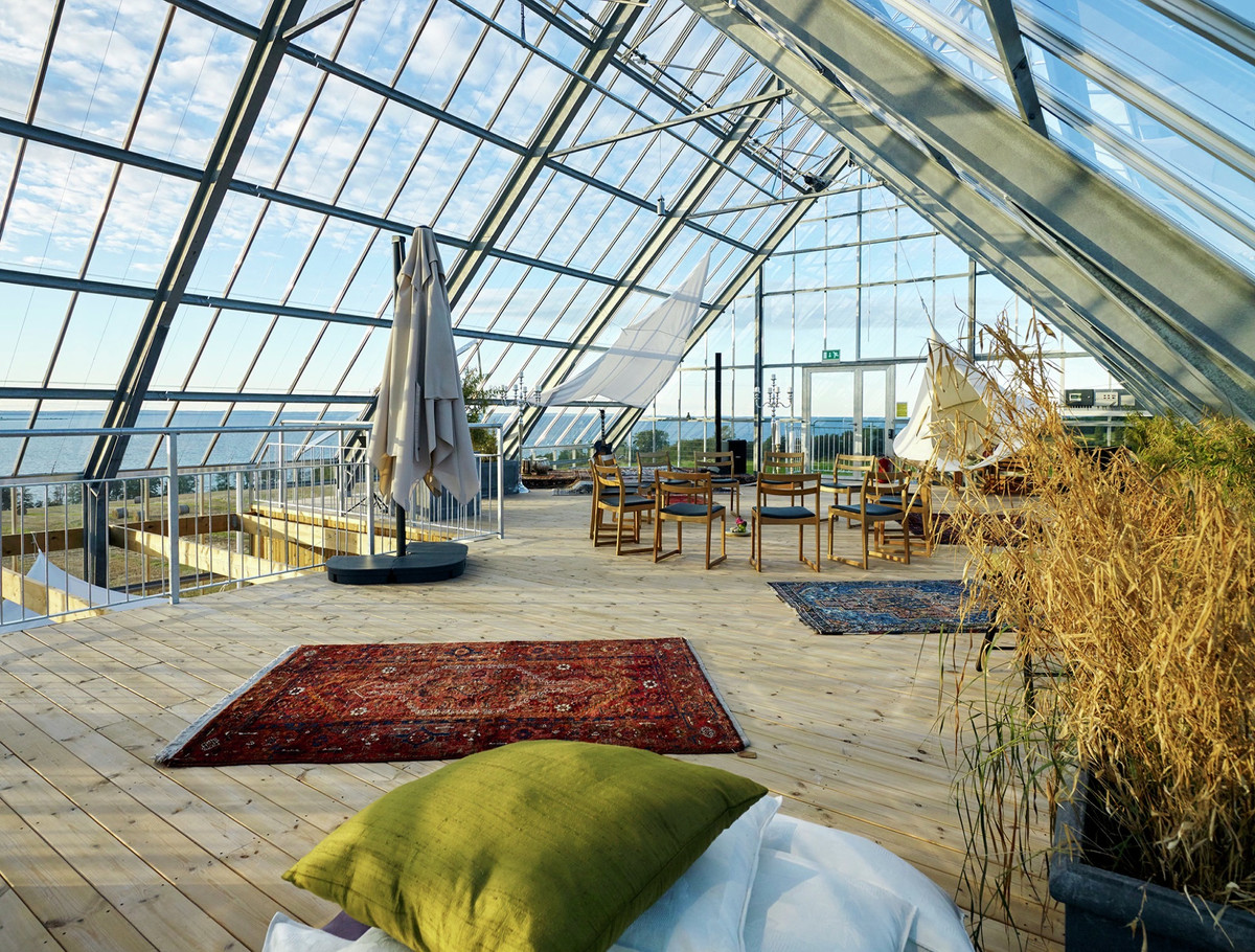 Решающим фактором стал проект, подсмотренный Клев в одном из архитектурных журналов. В 2015 году студия Tailor Made Arkitekter из Гётеборга построила на берегу шведского озера Веттерн спа-центр с пространством для проведения мероприятий Uppgrenna Naturhus. Он представляет собой оригинальный микс традиционного крестьянского амбара и теплицы. В одной половине находятся совершенно обычные помещения разнообразного назначения. Другая же представляет территорию, одновременно открытую и в то же время изолированную от капризов климата. Маргит-Кристин немедленно захотела адаптировать эту идею к собственным потребностям.