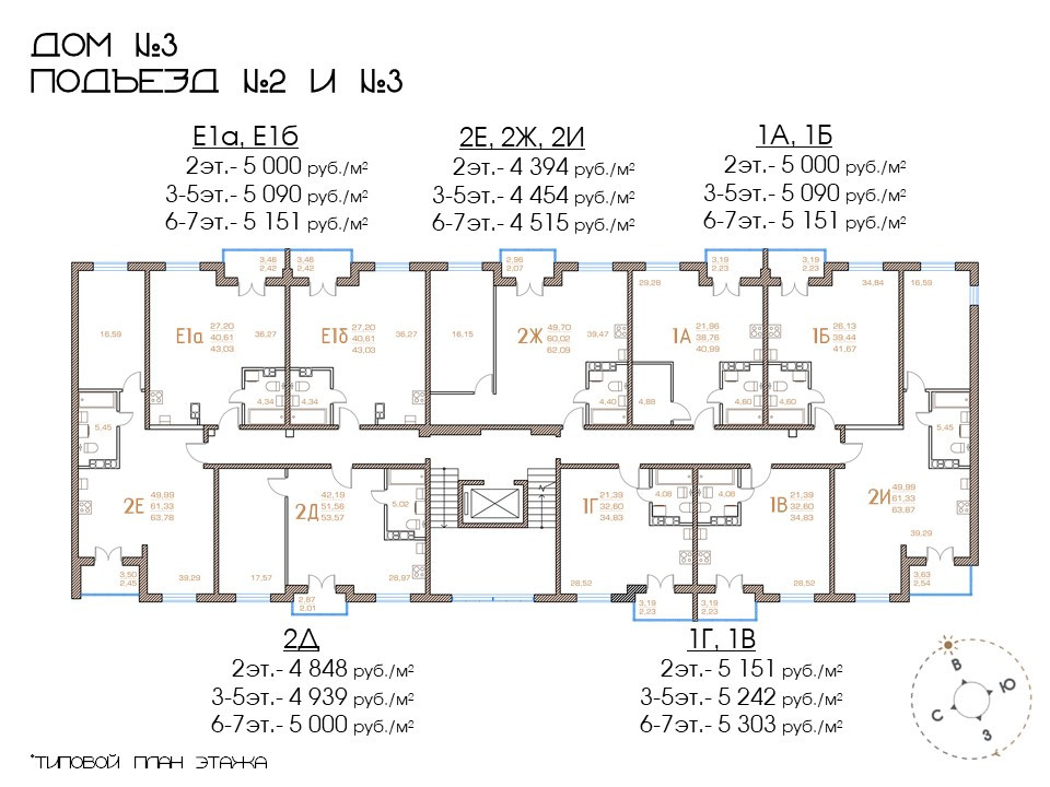 В доме запроектированы 164 квартиры площадью от 34 до 82 кв. м. Сдаются они с черновой отделкой. Цены однушек стартуют от 5000 за метр, двушек — от 4394, трешек — от 4242. Понятно, что все зависит от этажа и метража, так что окончательный расчет будет известен только на консультации с менеджером.