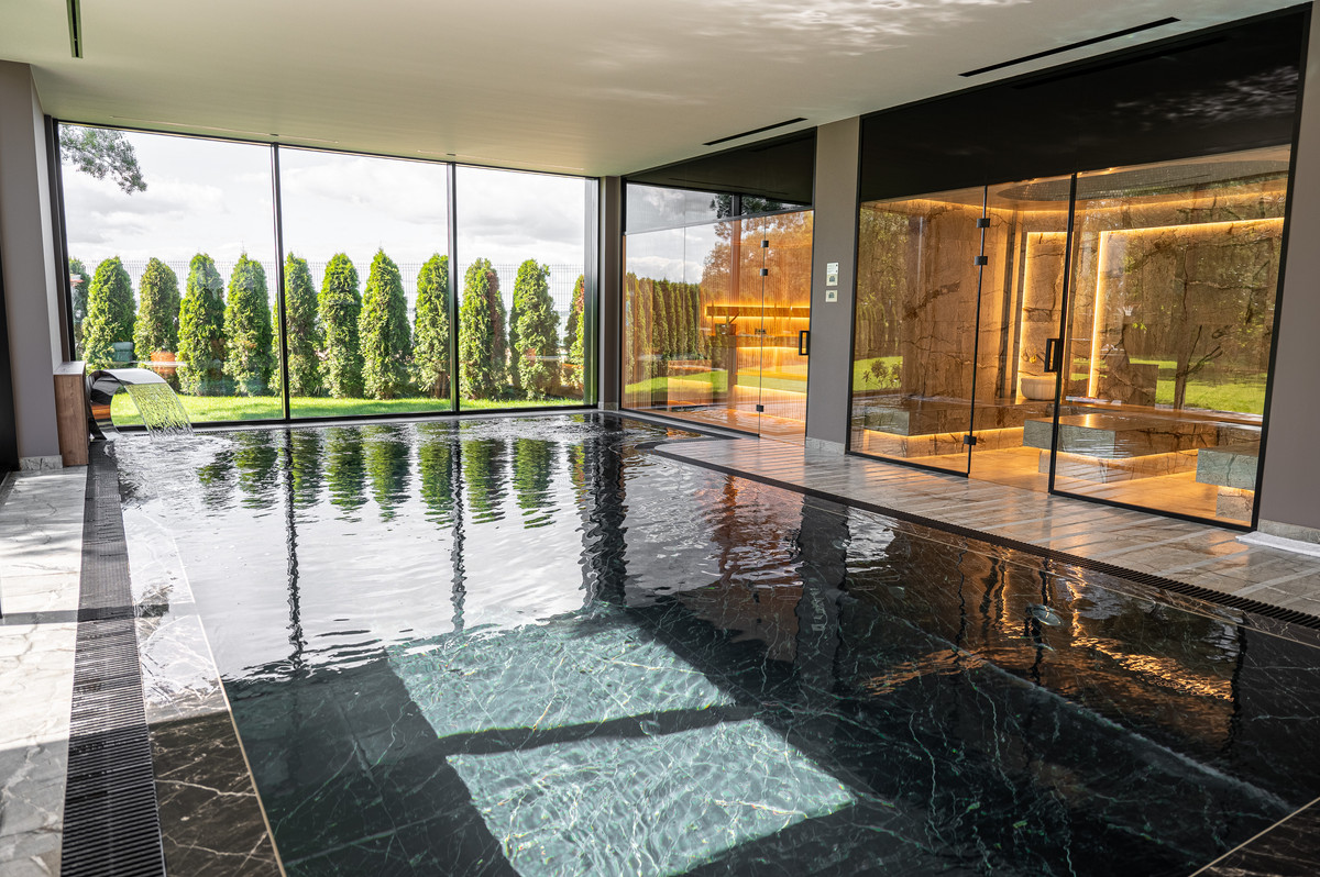 — Все виллы построены по одному концепту. Коммуникации в них уже заведены. Первый этаж включает гостиную с кухней и выходом в зону спа. Там находится бассейн, помещения для сауны и хамама, а также душ и санузел.