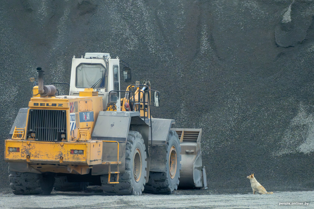 Над одним из горизонтов поднимаются тяжелые свинцовые столбы пыли. Раз в неделю, обычно по пятницам, в карьере взрывают породу. Проходит час, и на горизонтах начинает кипеть работа: самосвалы, похожие издали на игрушечные машинки, увозят добытую породу на дробильно-сортировочный завод, где ее мельчат на разнообразные фракции. На одном из карьерных экскаваторов уже долгое время работает наш герой — Сергей Таболич.