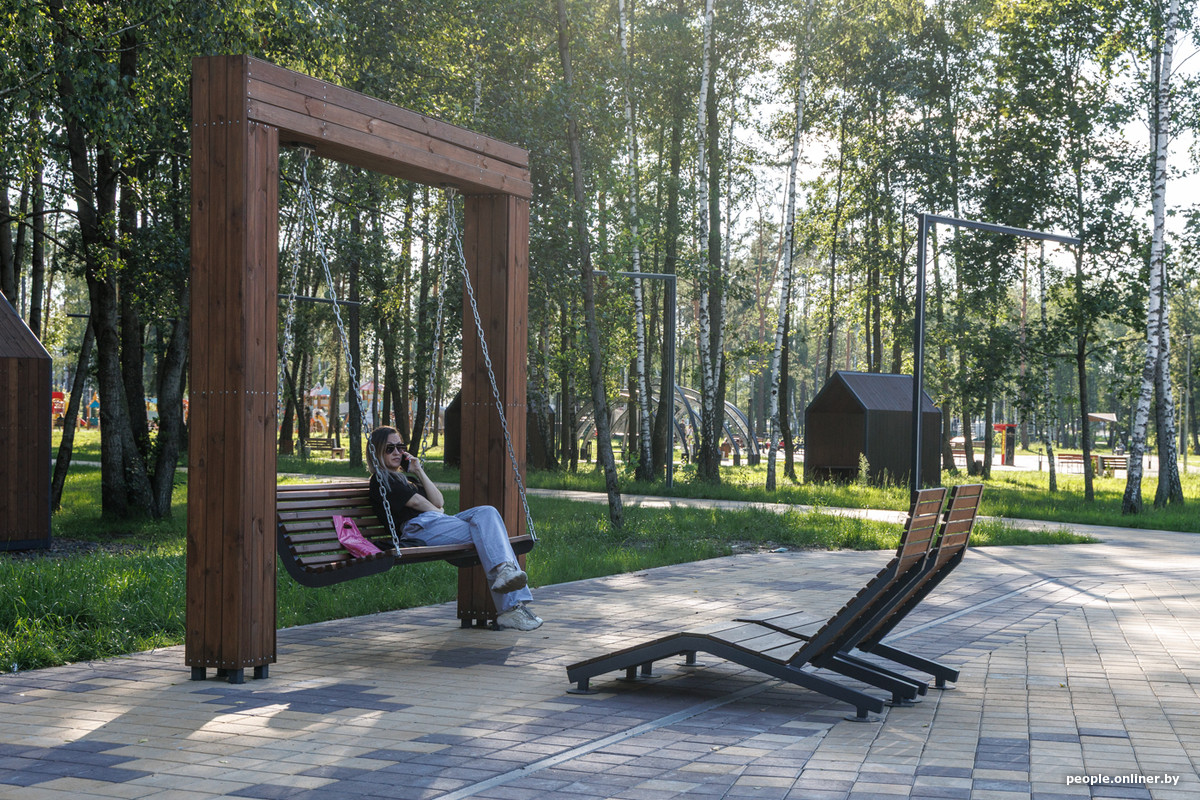 Уже после мы договорились встретиться с Сергеем в центре Микашевичей и немного прогулялись по парку. Он рекламирует городок, говорит, что «Гранит» серьезно вкладывается в его инфраструктуру и здесь «есть все для жизни, а на праздники сюда съезжаются жители со всего Лунинецкого района и других городов».