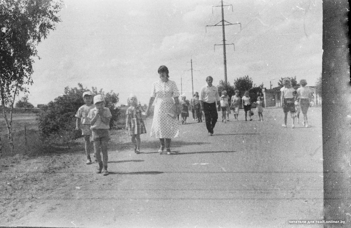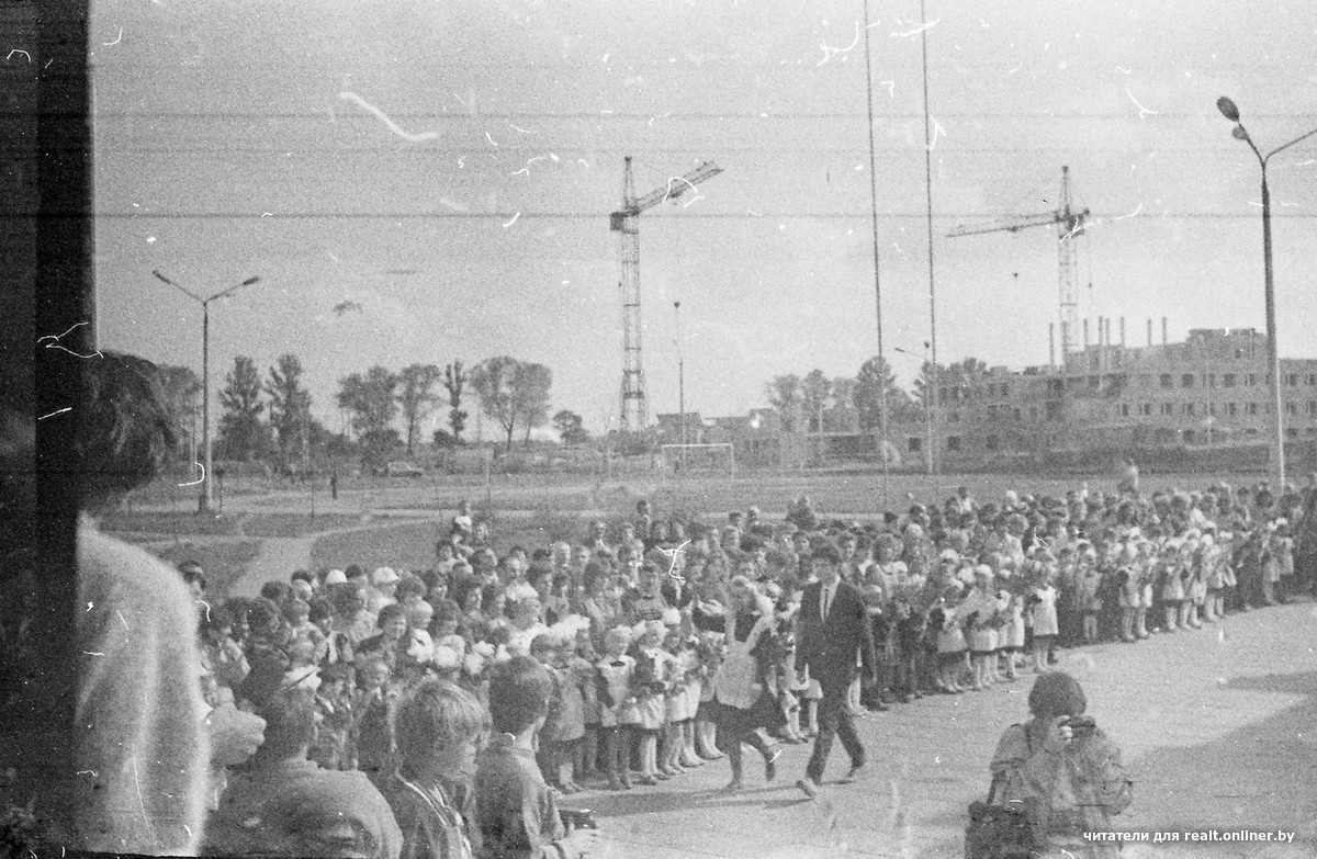 — Я замерла перед экраном монитора! Одежда детей — школьная форма — подсказывала, что это 1980-е. Поскольку то время я помню плохо (была маленькой), пришлось просить «помощь зала» в социальных сетях, — признается Leninby. — Со 100%-ной точностью определили: это Минск. Подтверждают версию две башни НПО «Гранат» в Кунцевщине. Рассматривая кадры этой пленки, нетрудно заметить, что автор фотографировал с перерывами. Здесь есть летние кадры — предположительно, это автогонки. Есть и осенняя пора — школьная линейка. На заднем плане — строительные краны и новостройки.