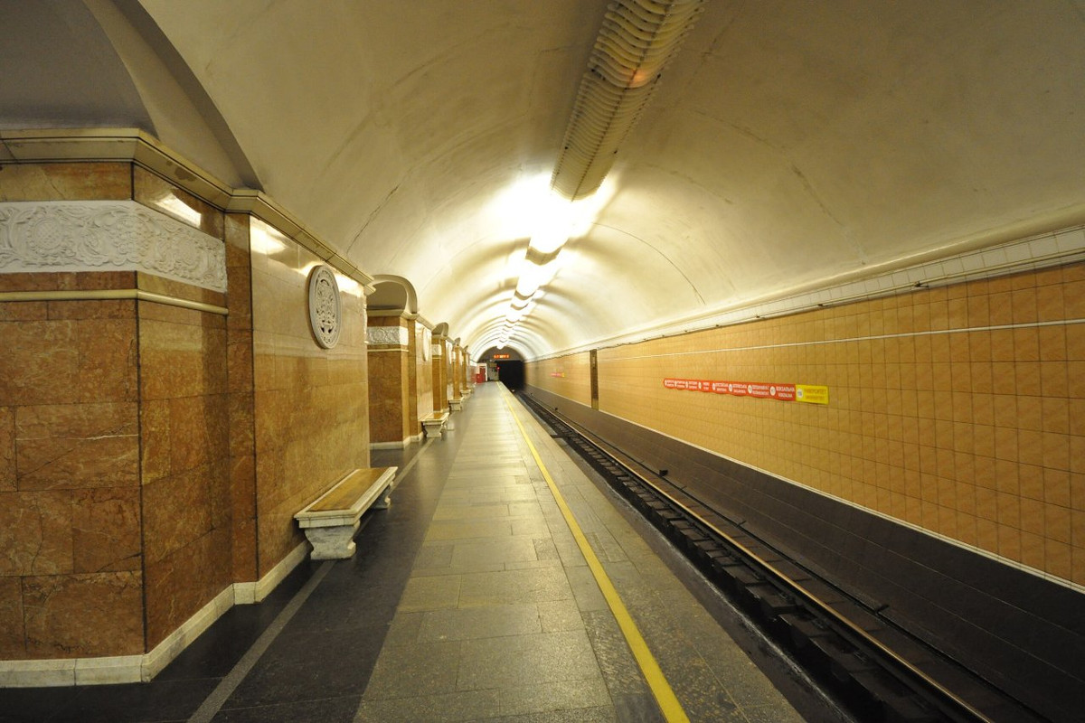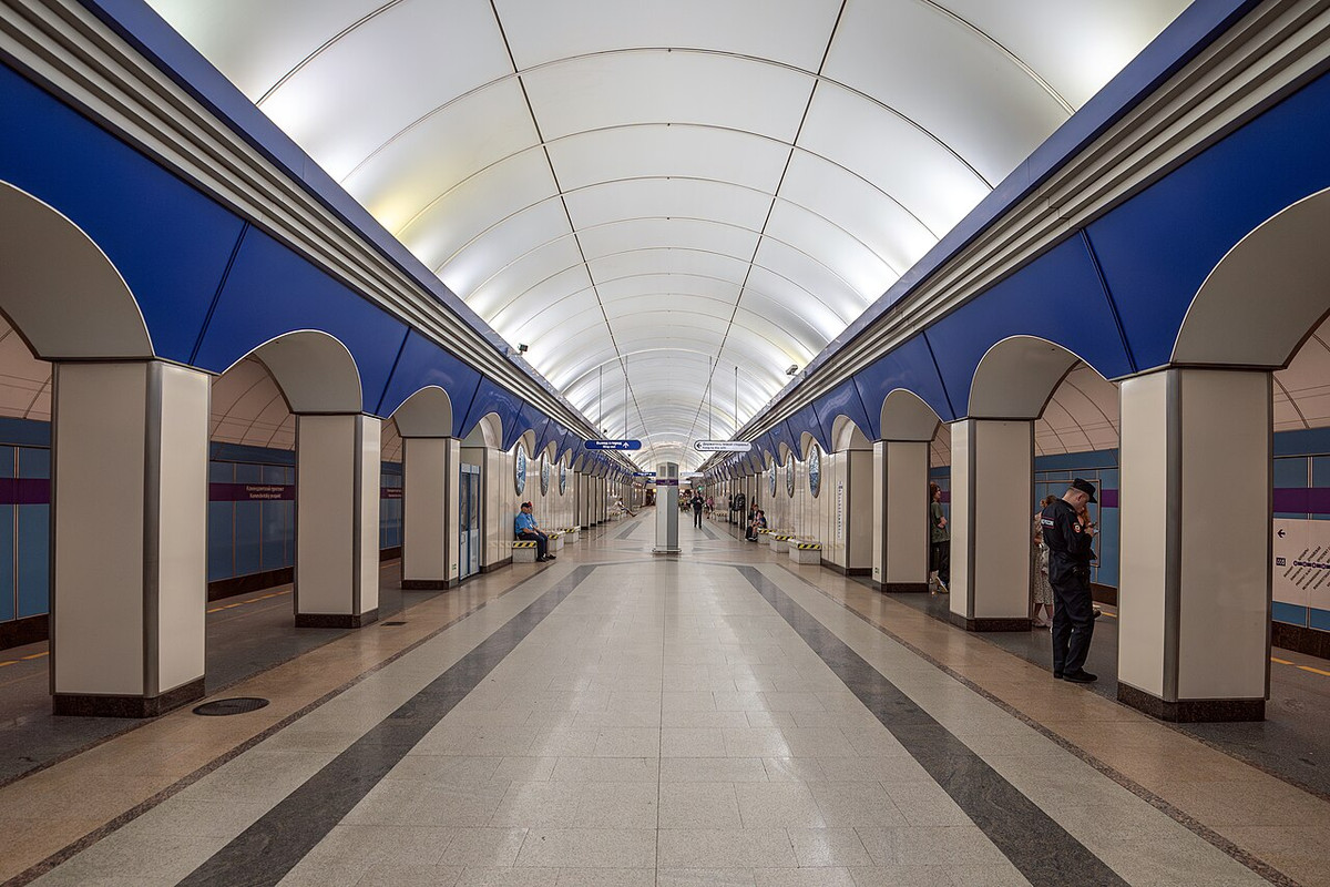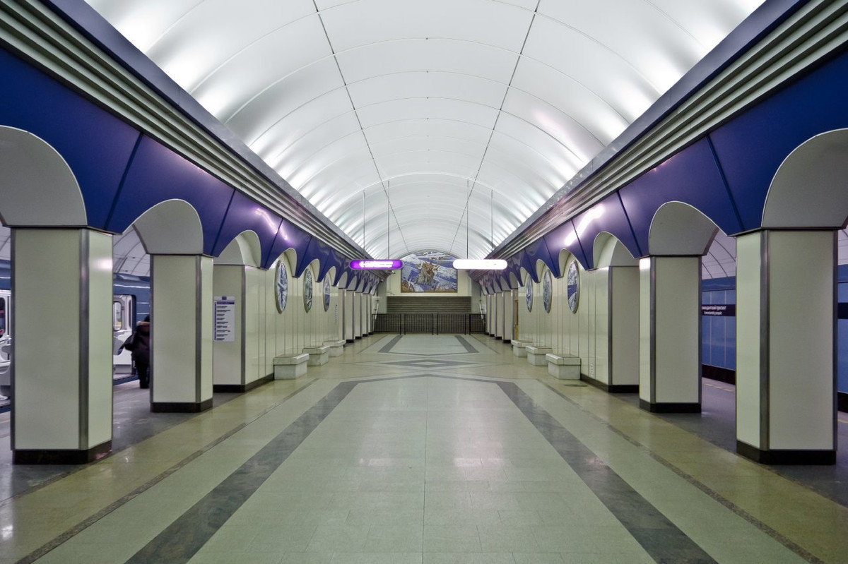 «Комендантский проспект» — одна из самых глубоких станций петербургского метро, расположенная на отметке 75 метров под землей. Проходку тоннеля начали еще в 1980-х, потом стройку заморозили из-за нехватки финансирования, а открыли только в 2005-м. Тип конструкции — колонно-стеновой, классика для глубокого заложения.