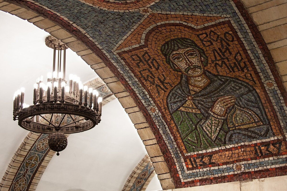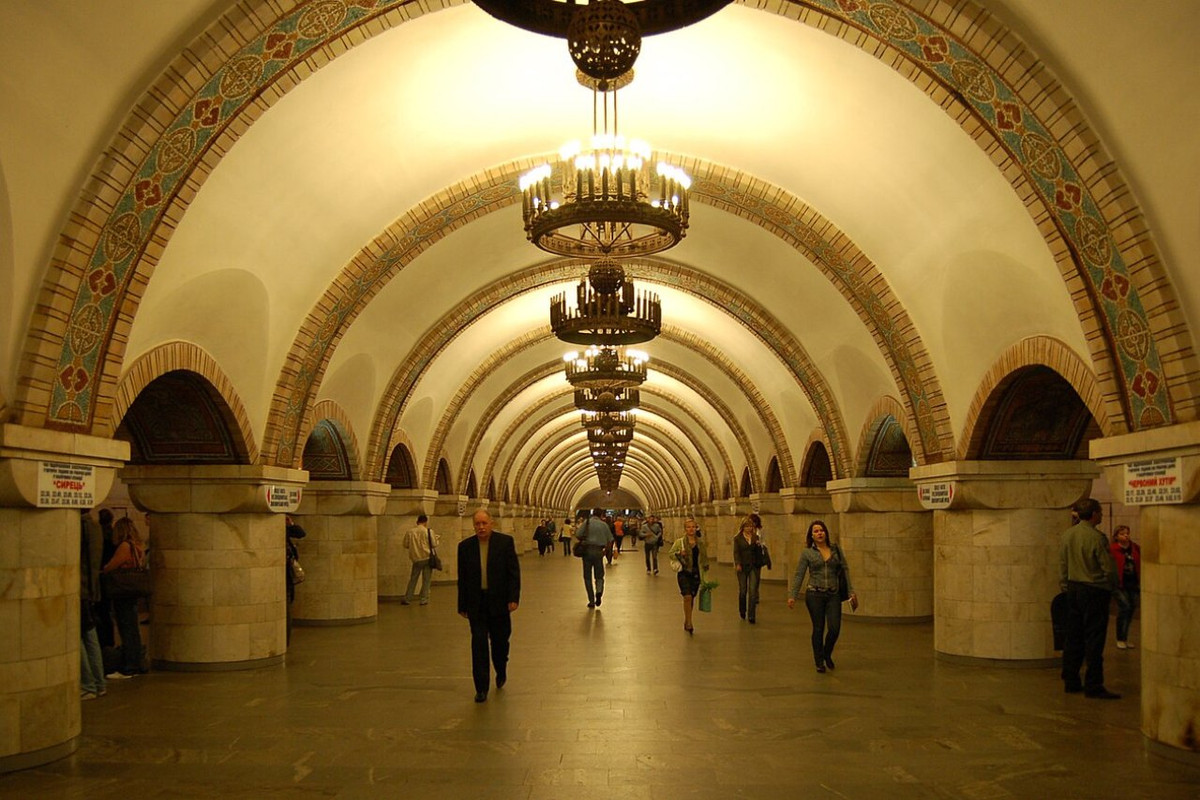«Золотые ворота» — это настоящая арт-галерея на глубине 80 метров. Станция названа в честь древнего киевского укрепления и оформлена в стиле княжеских палат: арки, колонны, византийские капители и мозаики. Это не просто транспортный узел — это экскурсия в историю Киевской Руси.