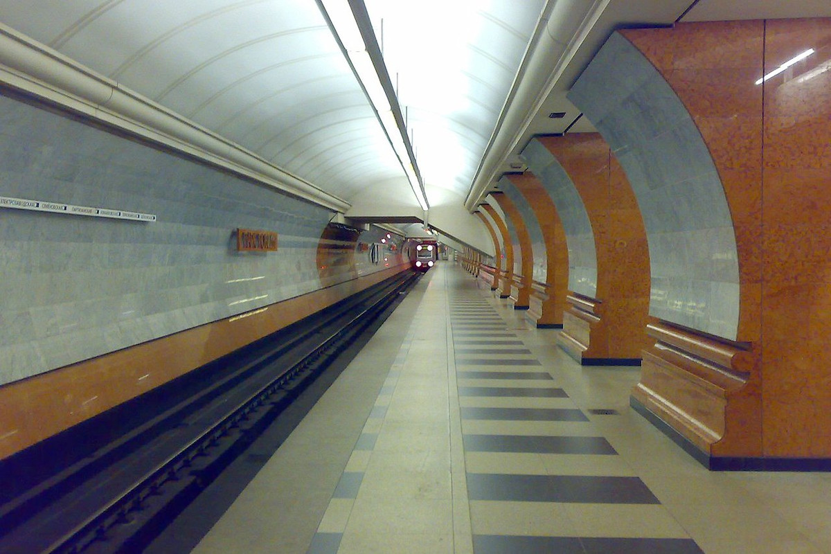 Станция уходит под землю на 86 метров и считается самой глубокой в России. Спуск к поездам — двухэтапный: большой эскалатор длиной 69 метров, малый — 15, между ними — переходный коридор.