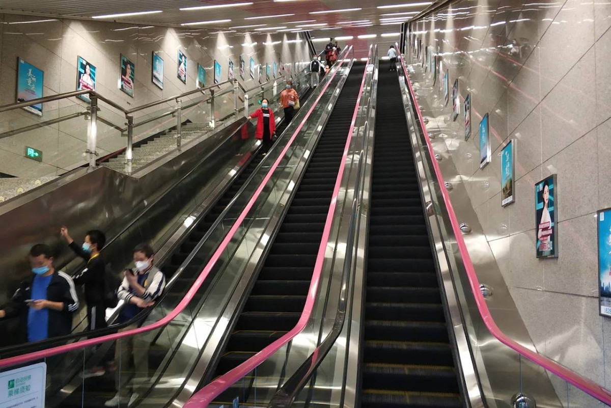 Чтобы выйти с линии 10, нужно преодолеть четыре последовательных эскалатора до станции на линии 6, а затем еще два до выхода на поверхность. Весь путь занимает 5 минут 13 секунд! Кстати, всего здесь 91 эскалатор, и это рекорд для Китая.