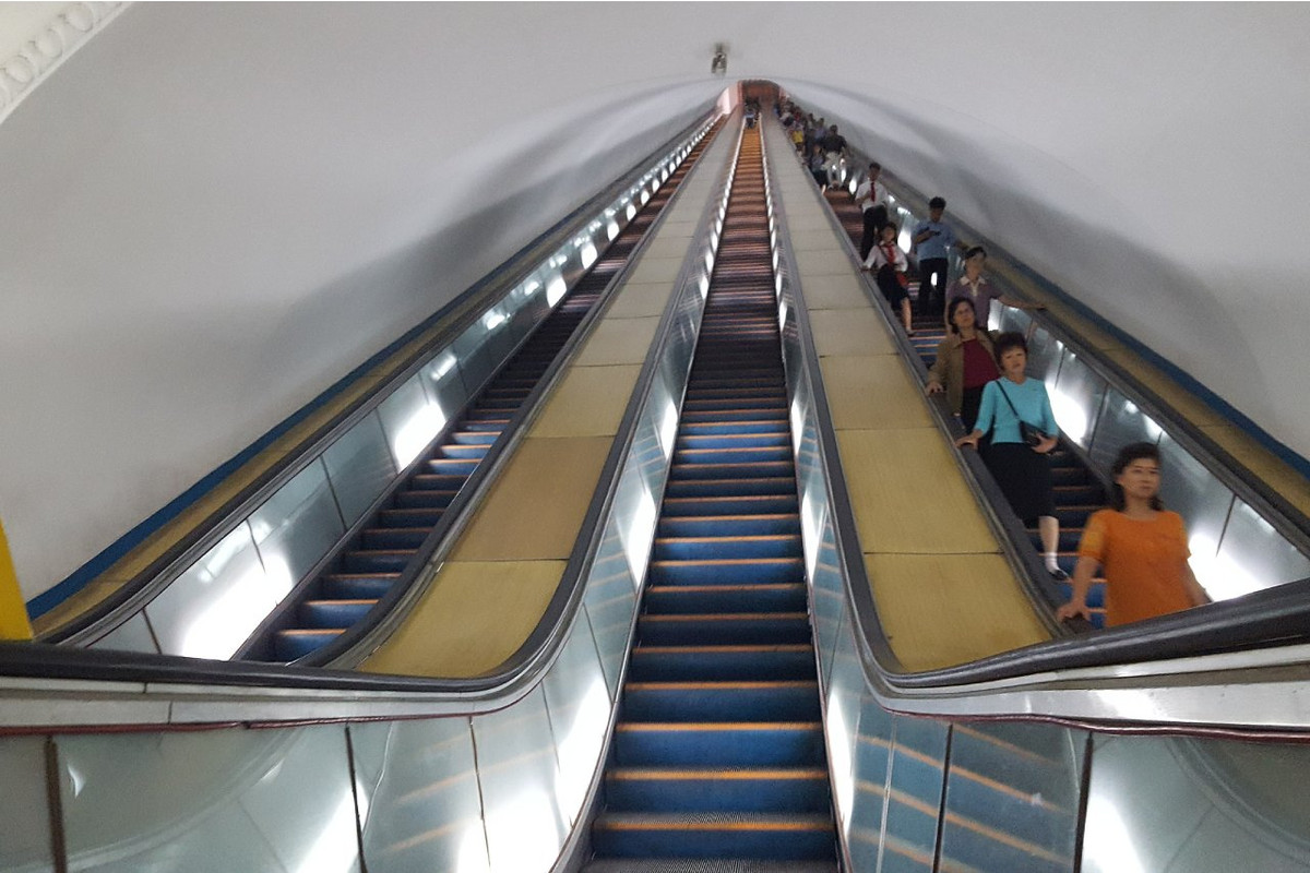 Станция «Пухын» в Пхеньяне часто фигурирует в списках самых глубоких в мире — якобы на отметке 100—120 метров. Официальные данные о глубине засекречены, а «Википедия» указывает цифры без источников. В то же время туристы, побывавшие на станции, засекали время спуска на эскалаторе — около трех минут. При скорости 0,9 м/с это дает примерно 80 метров. С учетом наклонного коридора и лестницы реальная глубина — ближе к 90 метрам. Впечатляюще, но никак не 120.